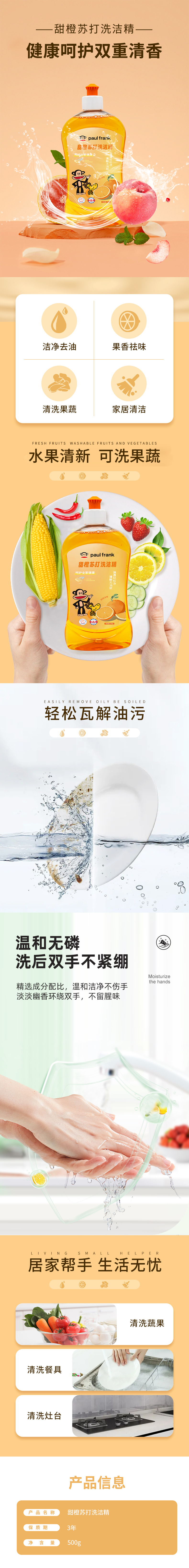 商品名称:Paul frank/大嘴猴甜橙苏打洗洁精500g
