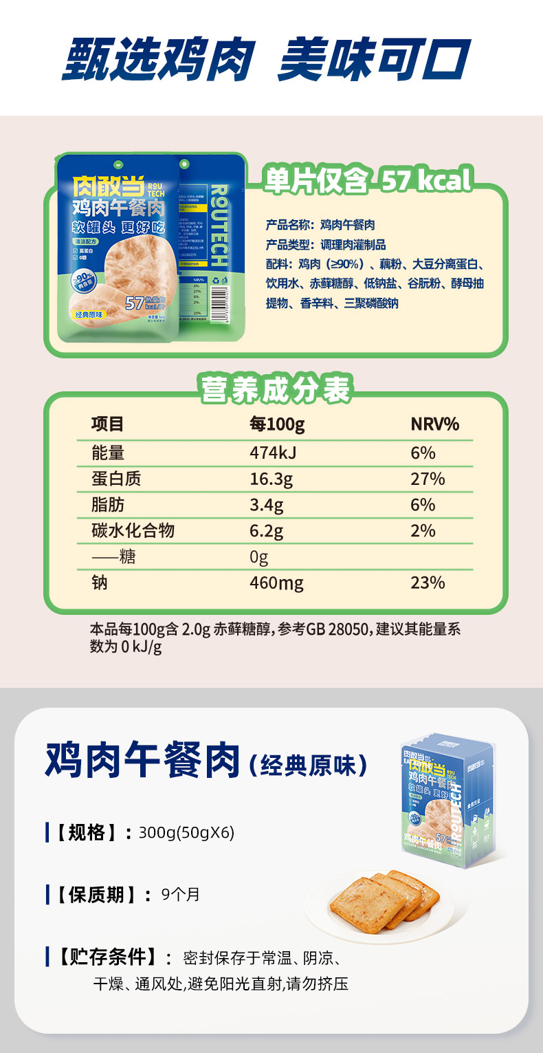 商品名称:肉敢当鸡肉午餐肉-经典原味300g*3盒
