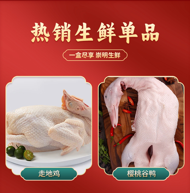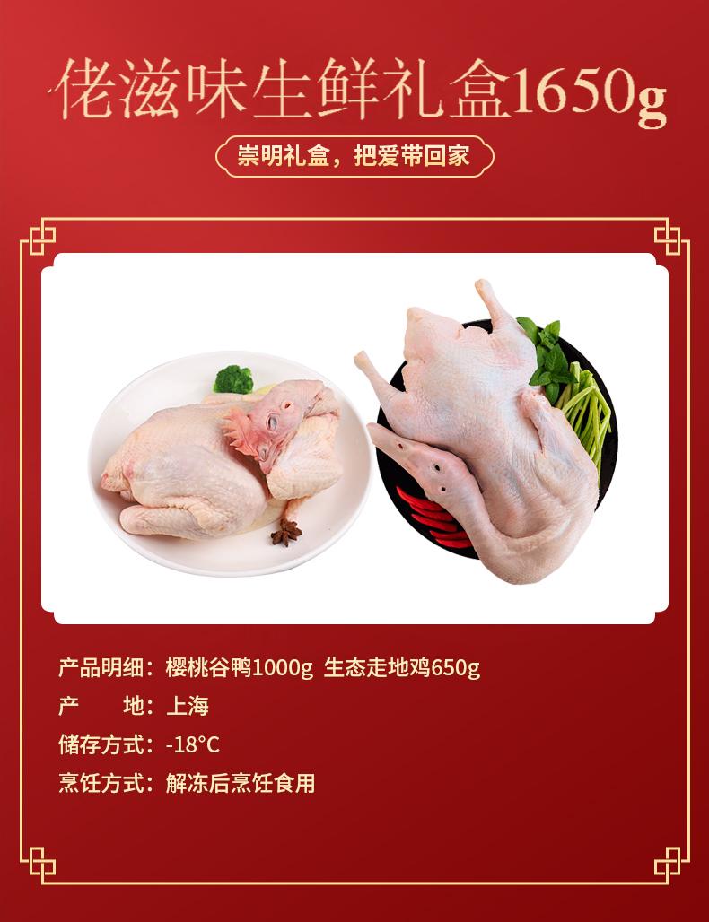 商品名称:【顺丰配送】佬滋味崇明家禽生鲜礼包198型约1650g