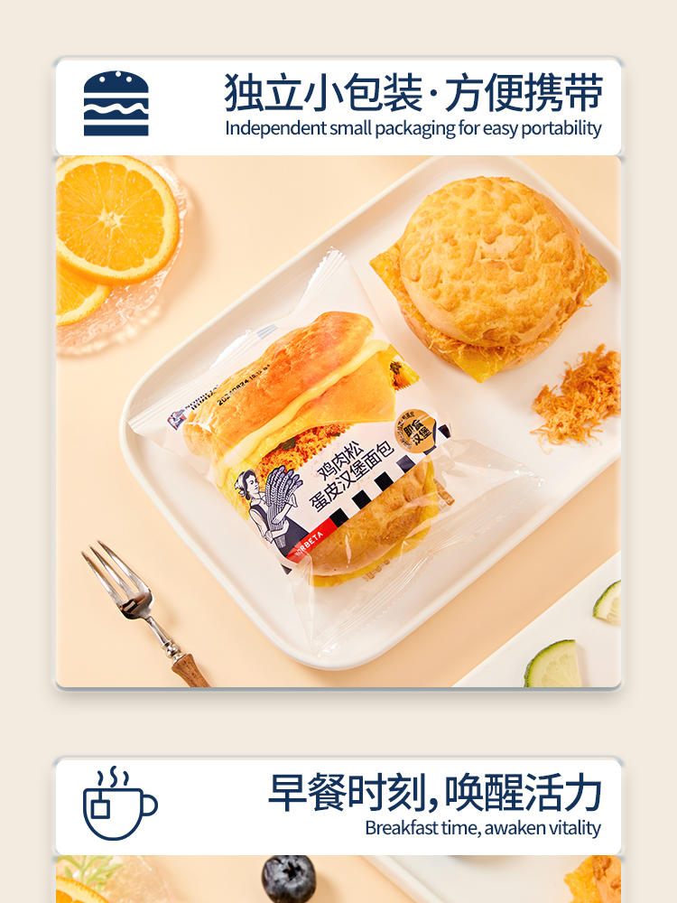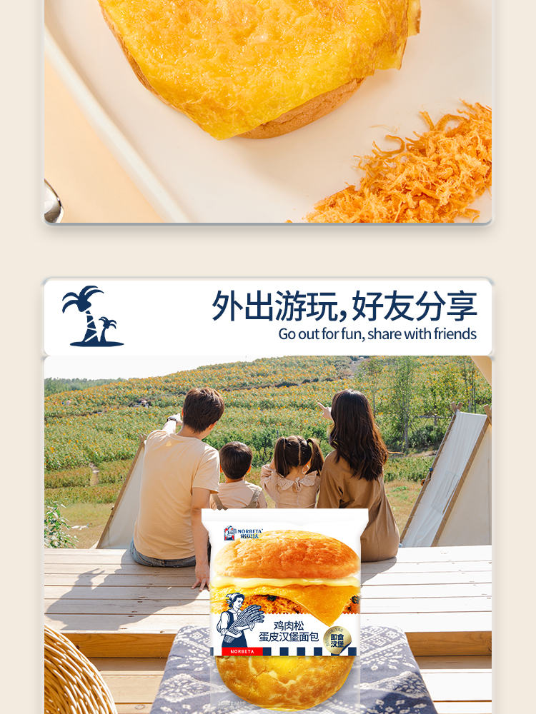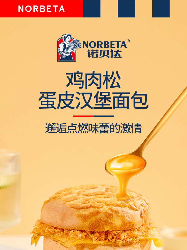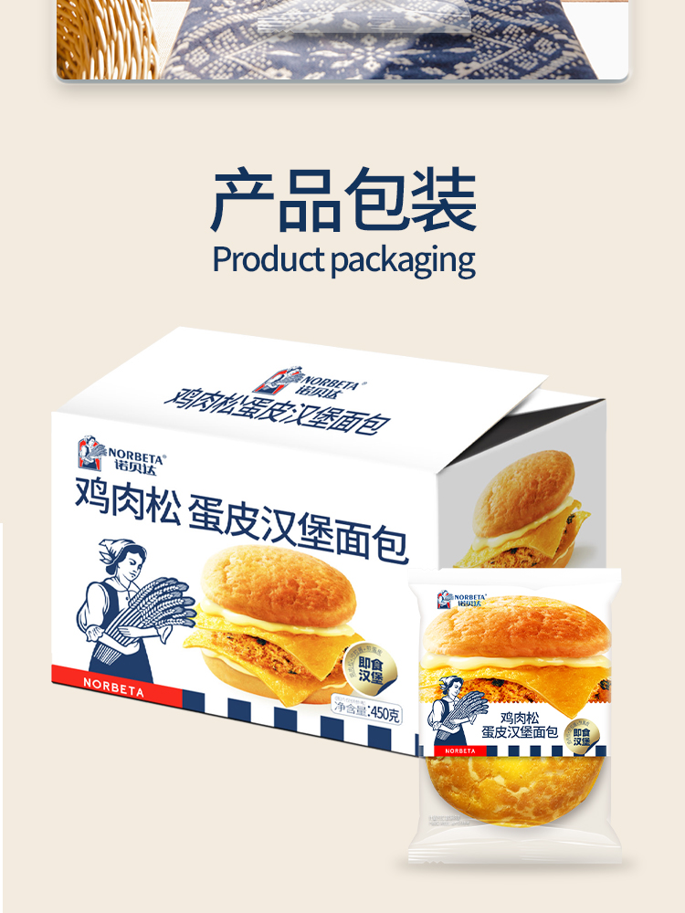 商品名称:诺贝达鸡肉松蛋皮汉堡面包整箱450g