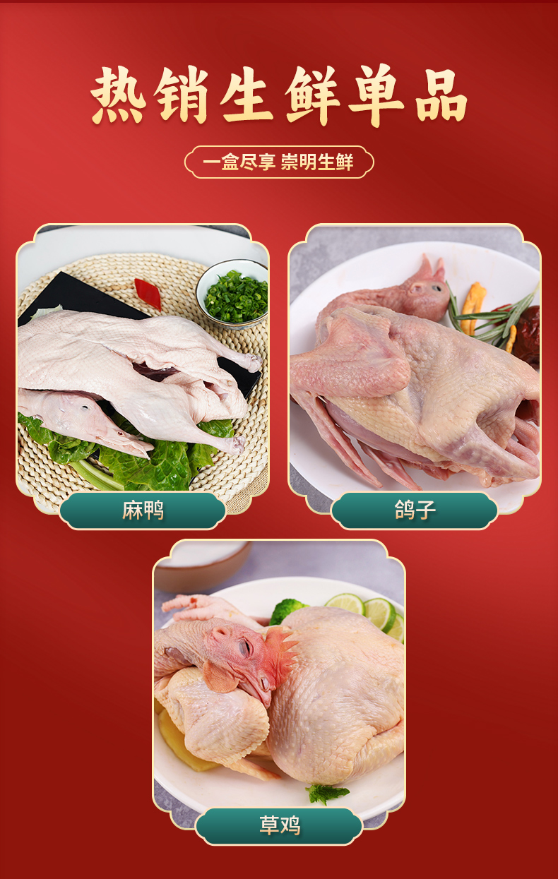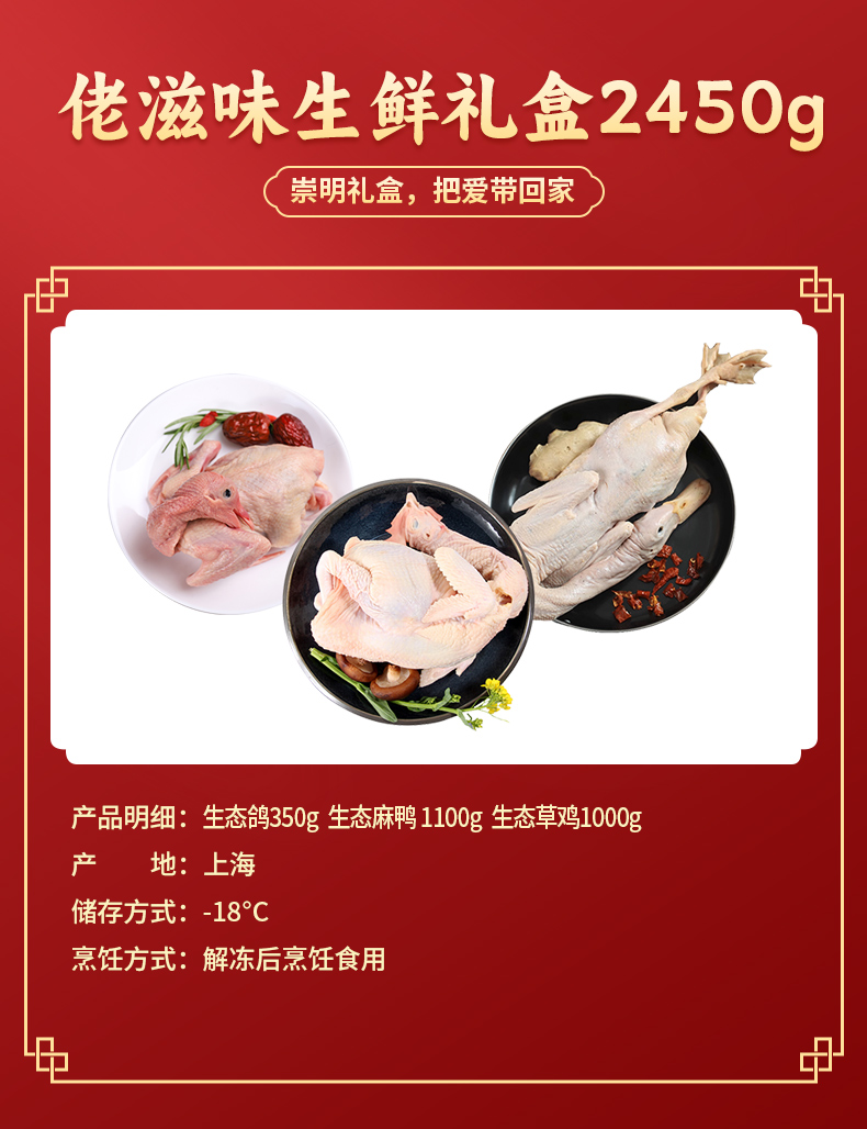 商品名称:【顺丰配送】佬滋味崇明家禽生鲜礼包298型约2450g