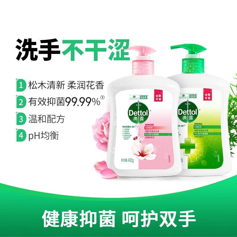 5.滴露健康抑菌洗手液滋润倍护450g+450g 1套