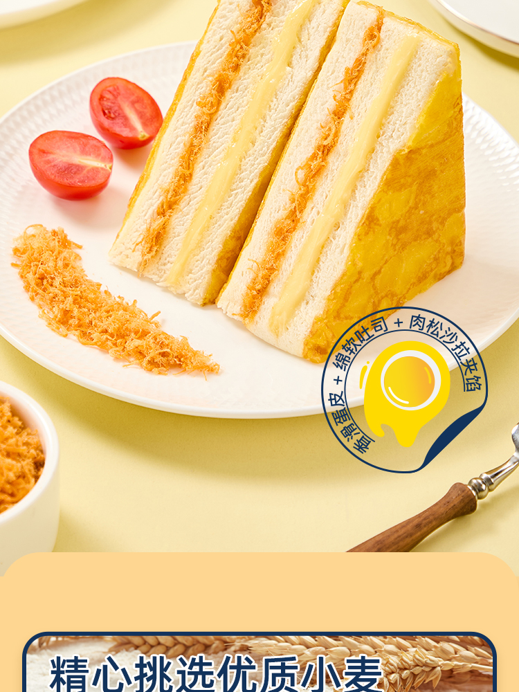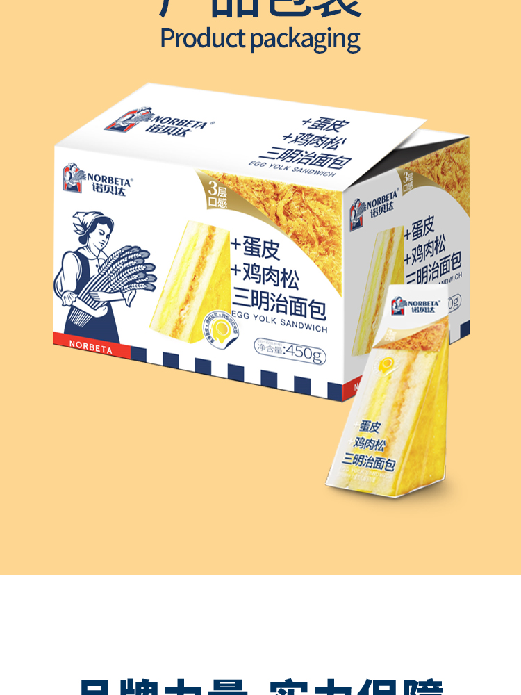 商品名称:诺贝达鸡肉松蛋皮三明治面包整箱450g