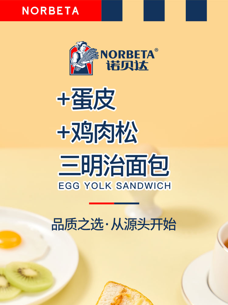 诺贝达鸡肉松蛋皮三明治面包整箱450g