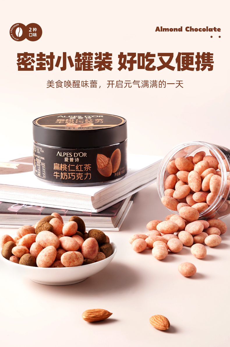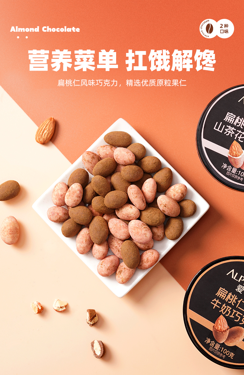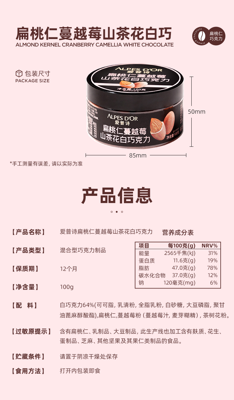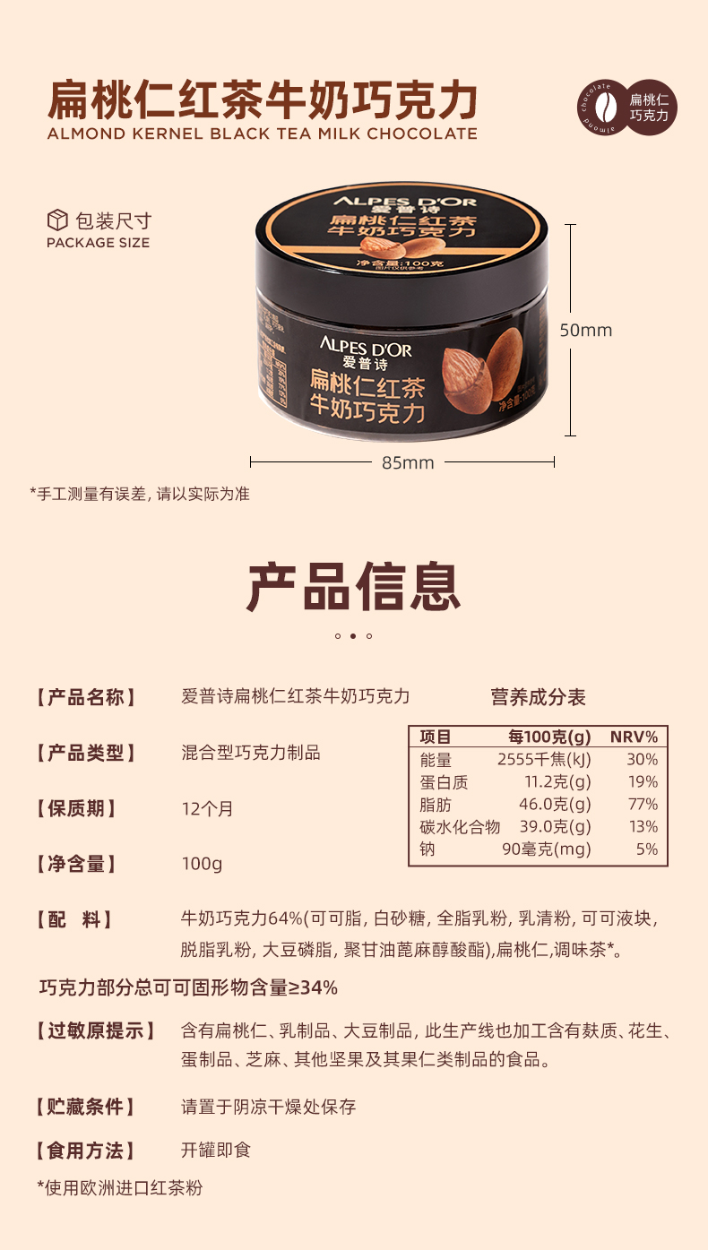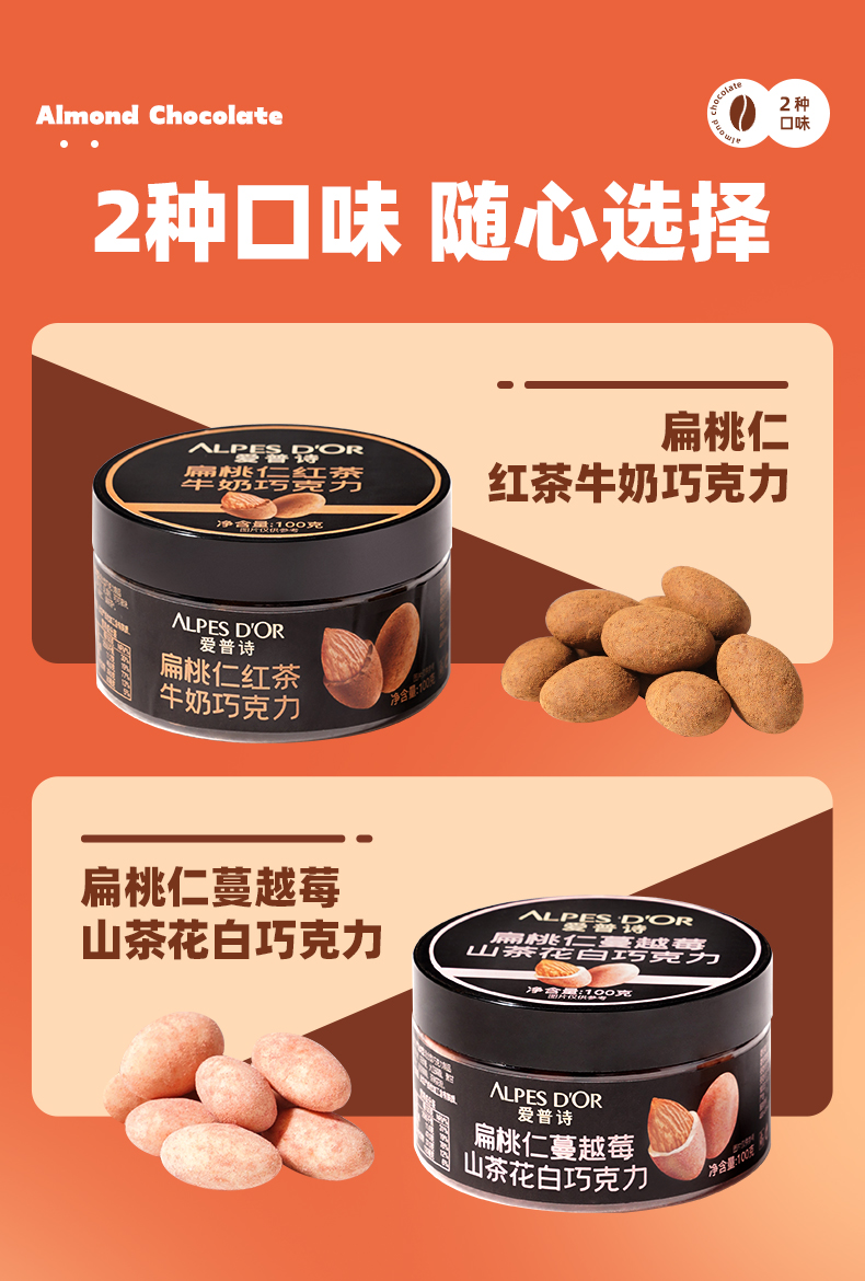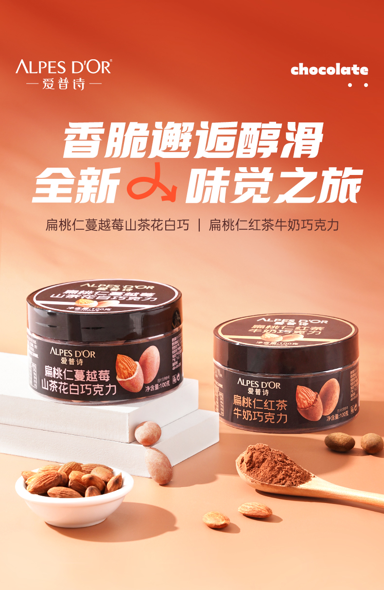 商品名称:ALPES D'OR/爱普诗扁桃仁巧克力100g*2盒