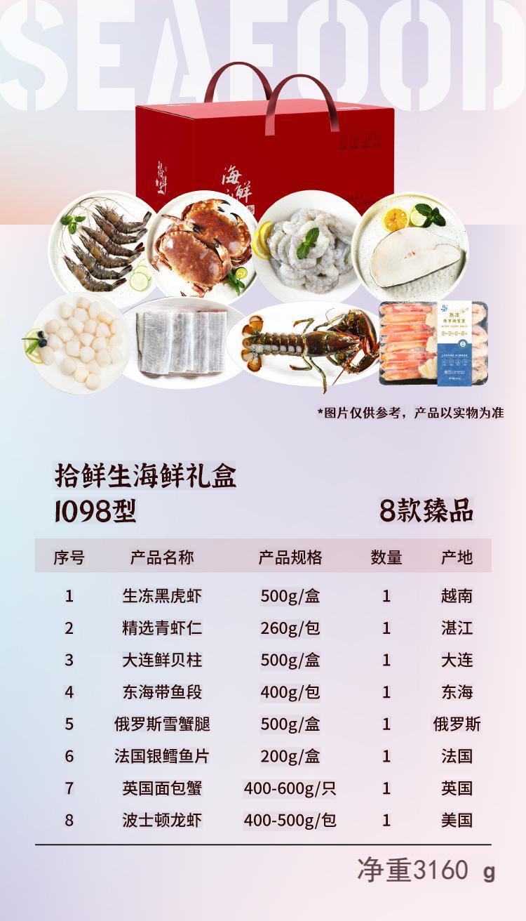 【顺丰配送】拾鲜生海鲜礼盒1098型约3160g