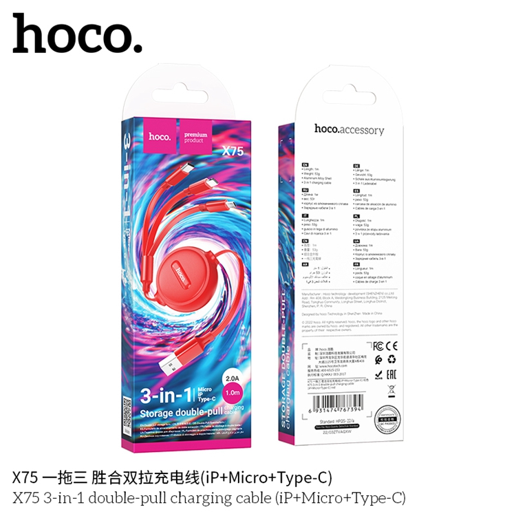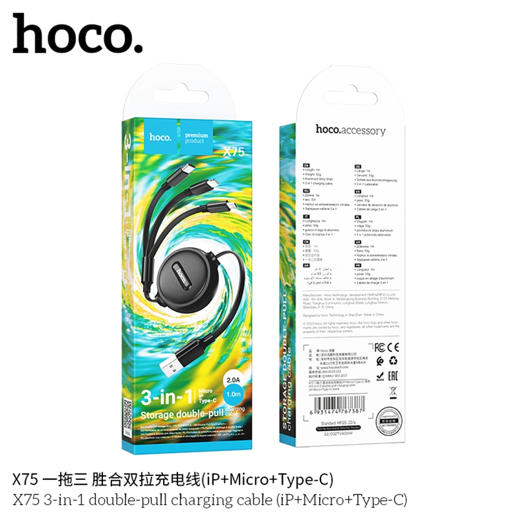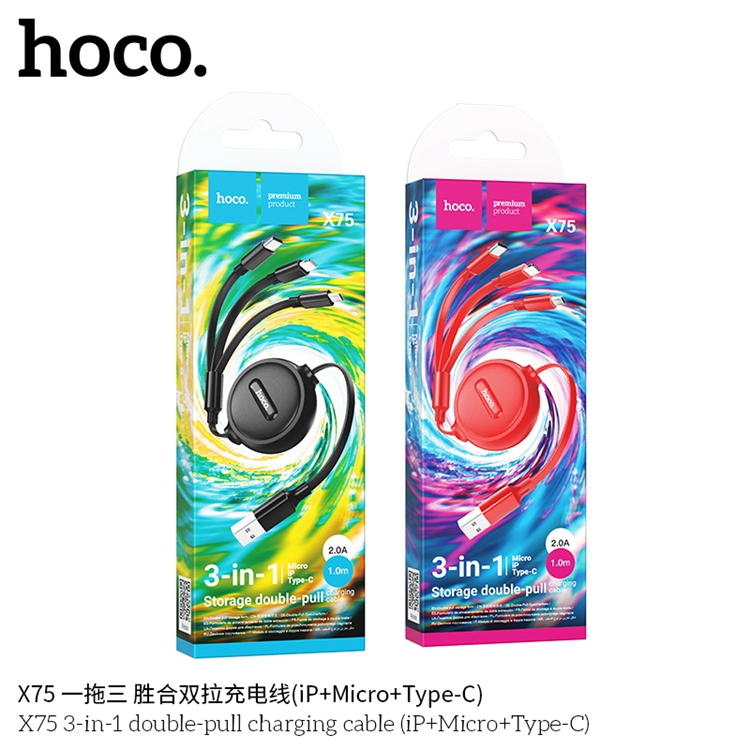 商品名称:hoco./浩酷一拖三胜合双拉充电线X75