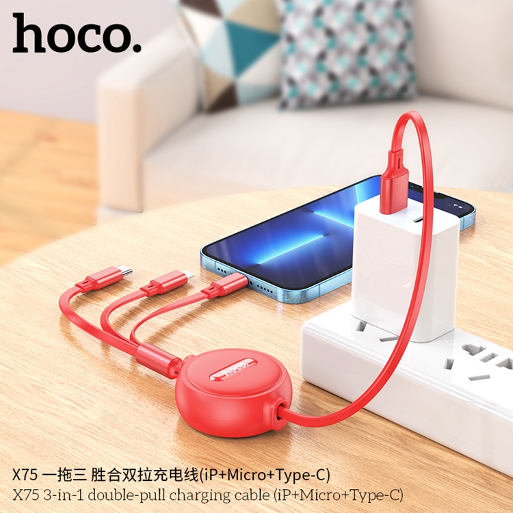 hoco./浩酷一拖三胜合双拉充电线X75