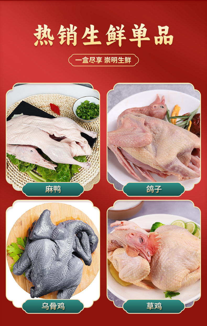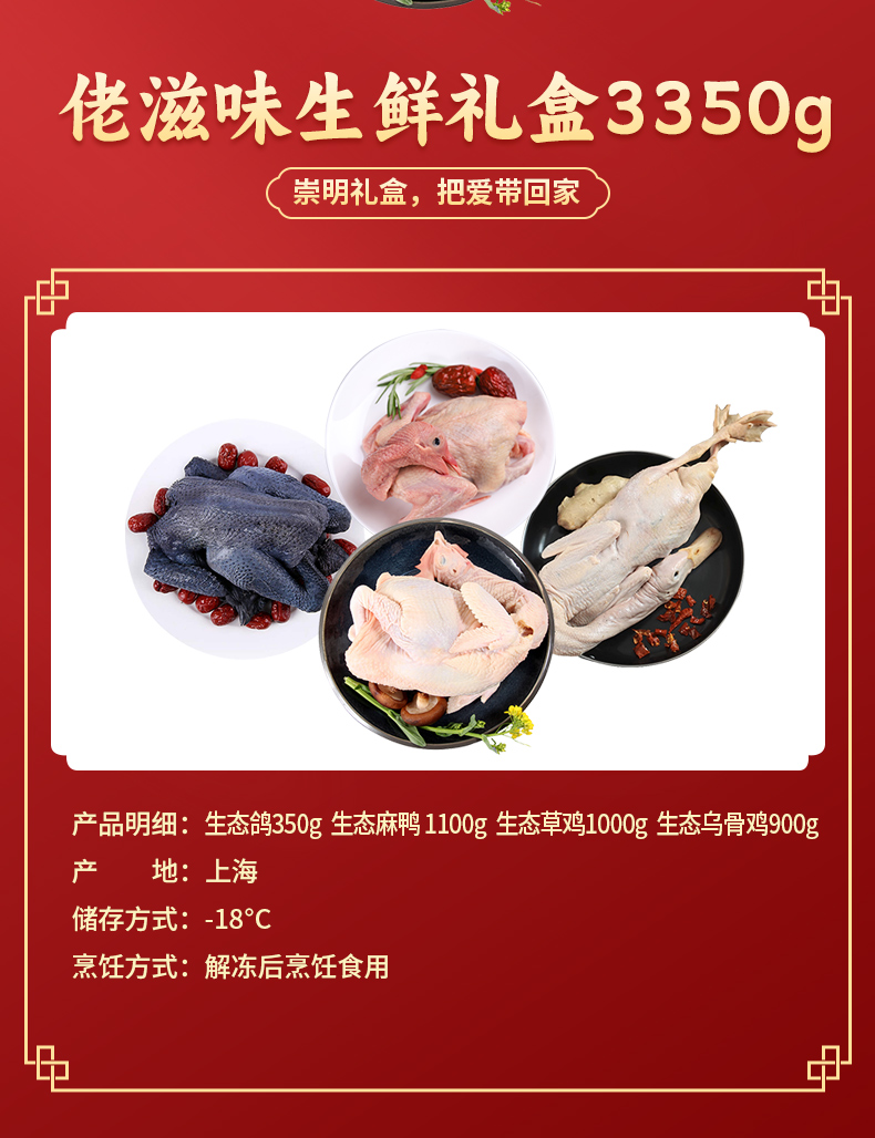 商品名称:【顺丰配送】佬滋味崇明家禽生鲜礼包398型约3350g