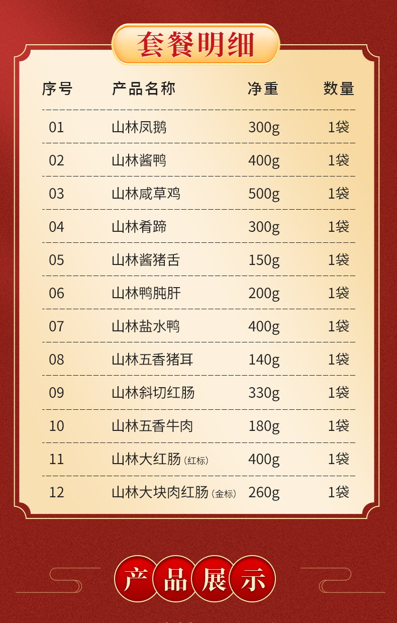 商品名称:【京东/顺丰配送】山林大红熟食礼包598型3560g