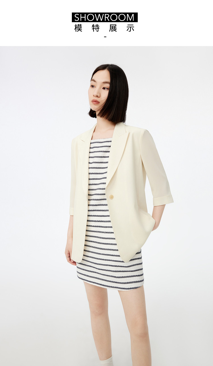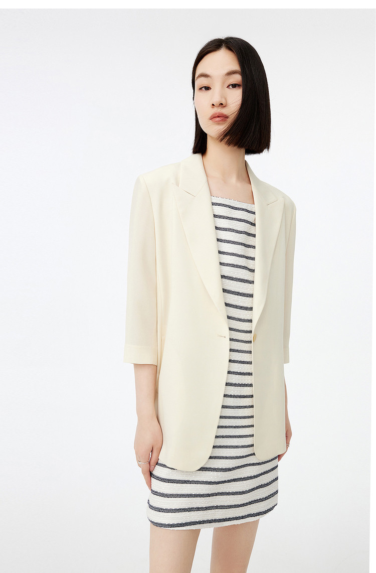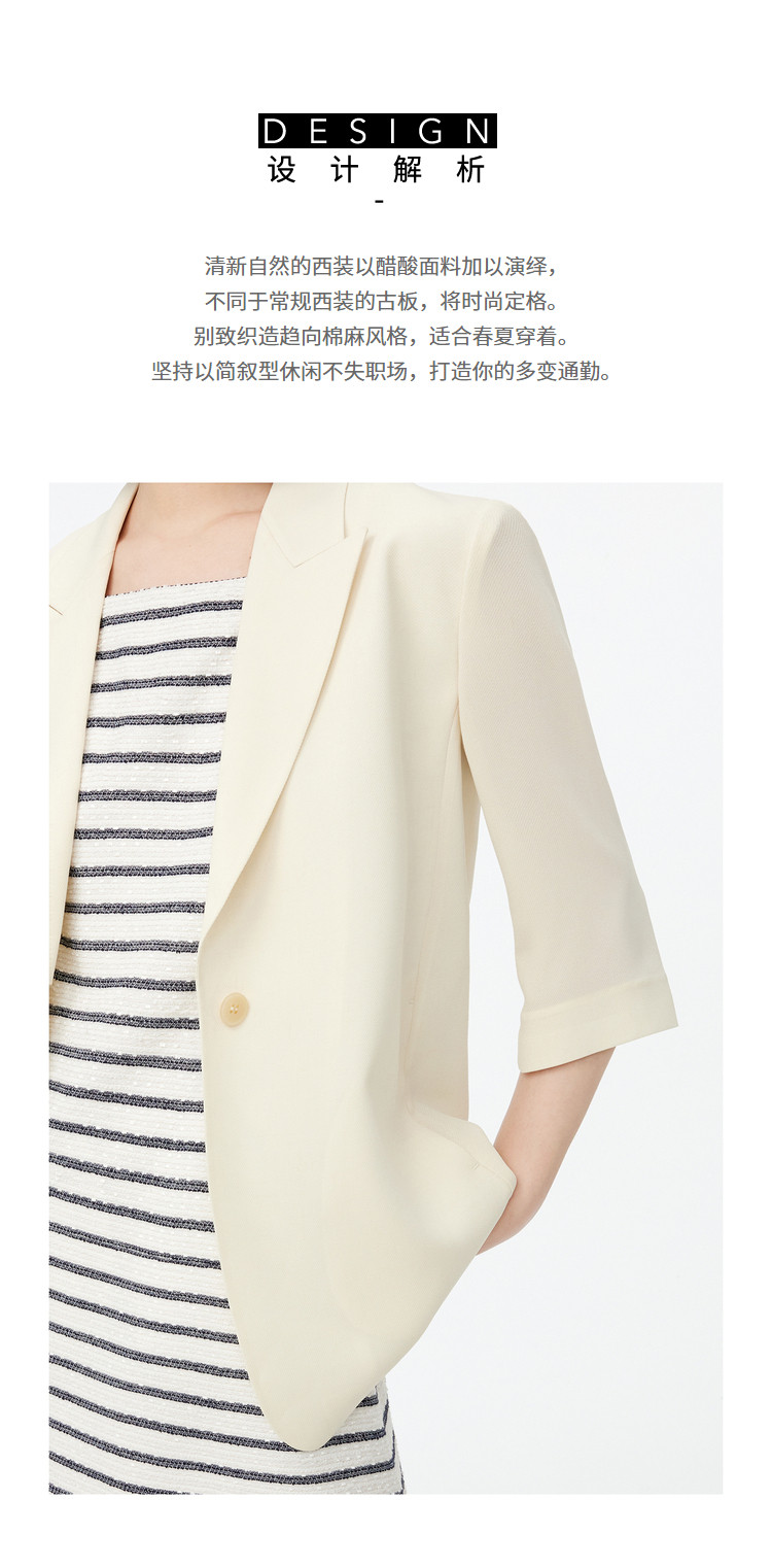 商品名称:春季时尚纯色休闲通勤简约复古七分袖醋酸西装外套 366107