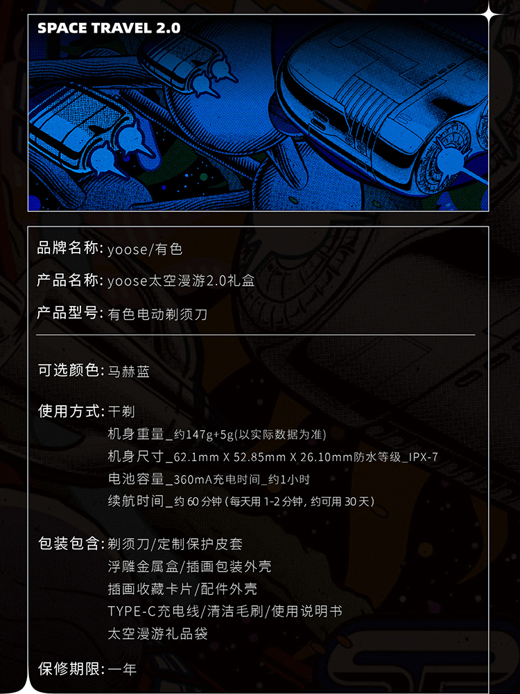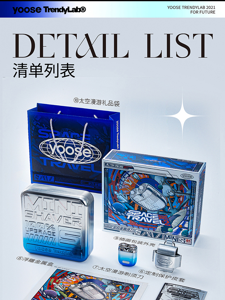 商品名称:yoose/有色电动剃须刀太空漫游2.0礼盒MINI-S