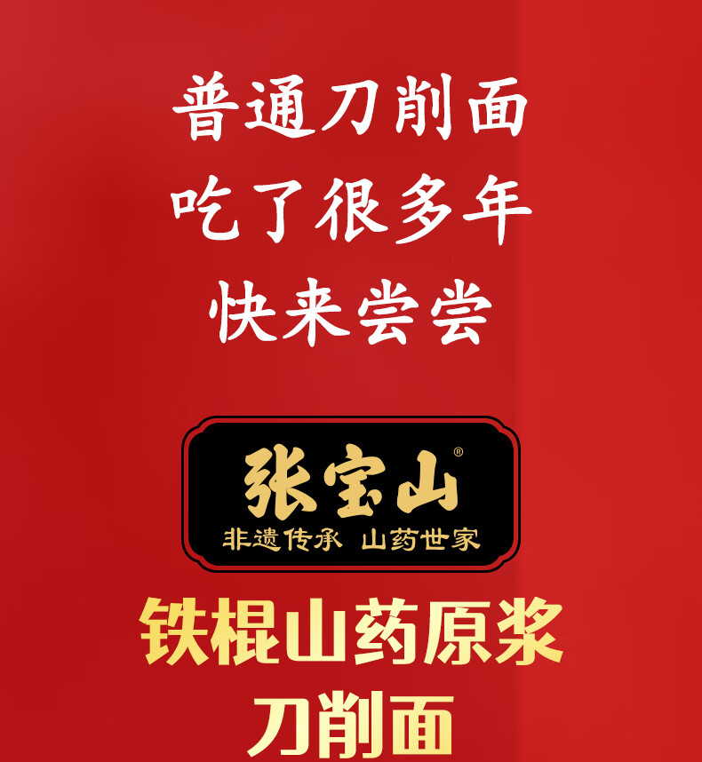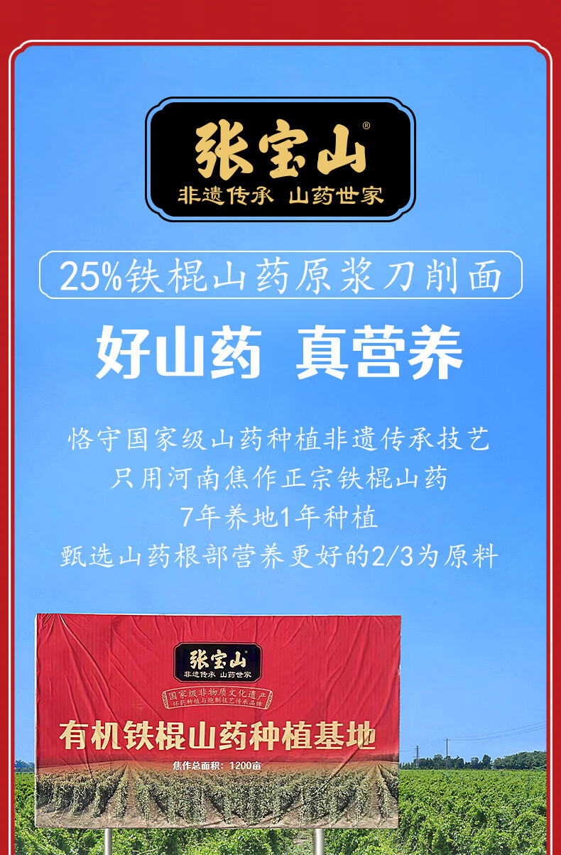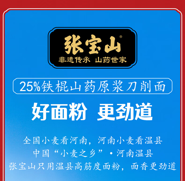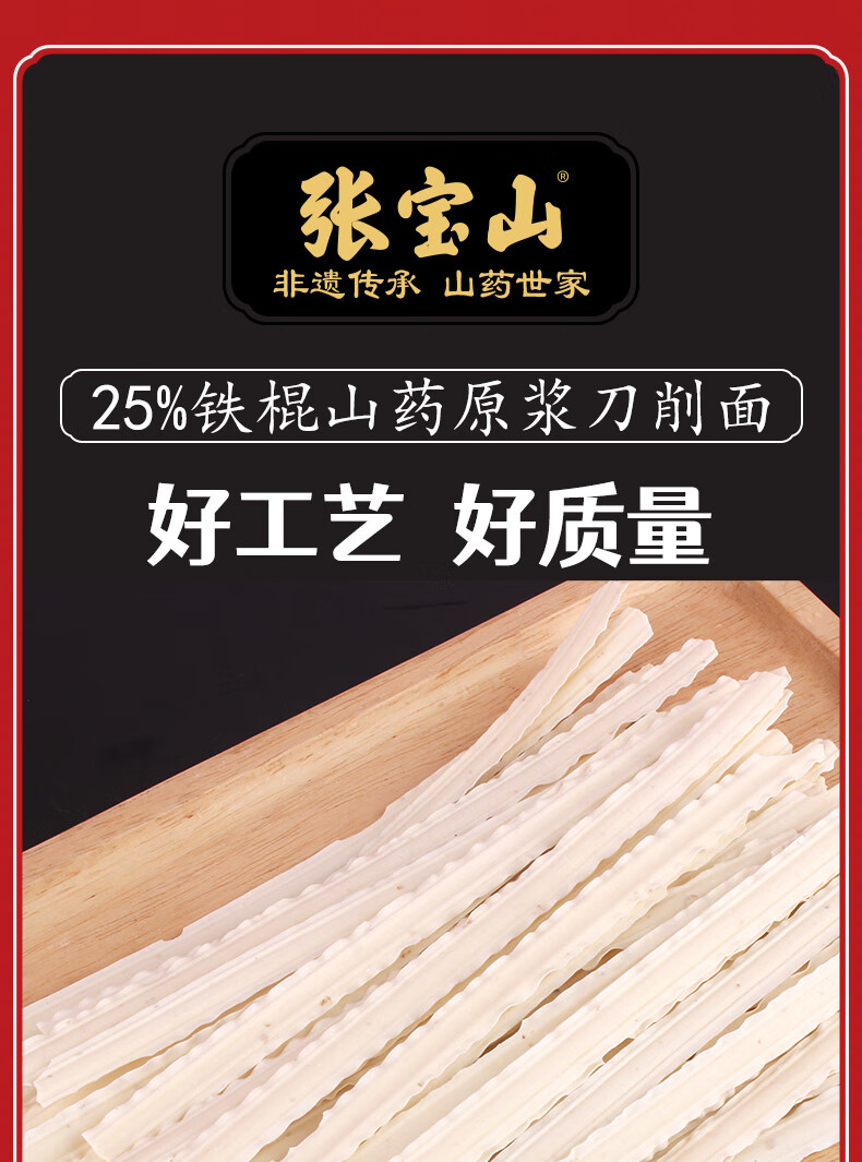 商品名称:张宝山25%铁棍山药原浆刀削挂面1kg