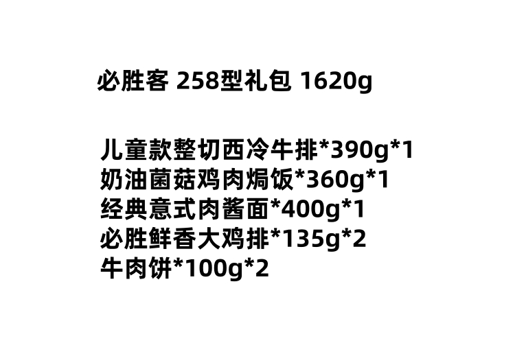 商品名称:【顺丰配送】必胜客258型速冻食品礼包1620g