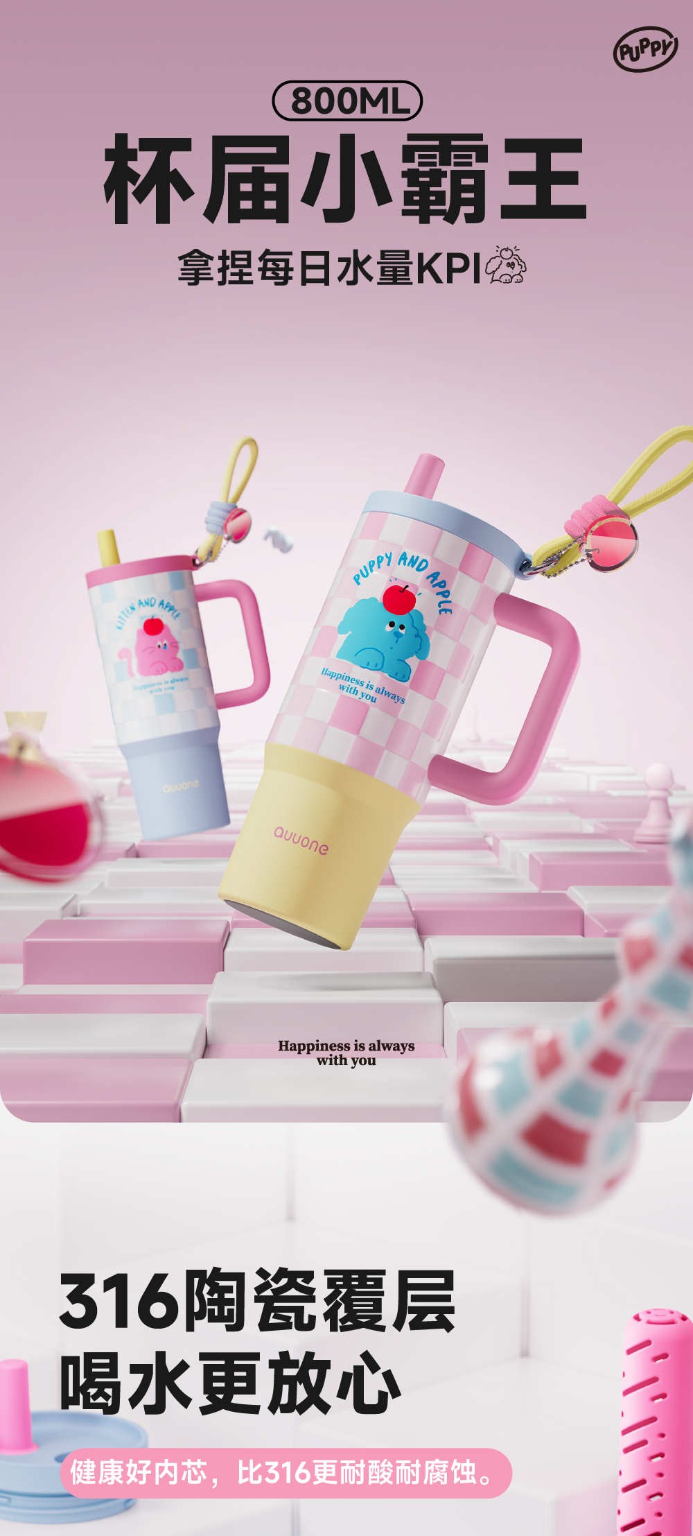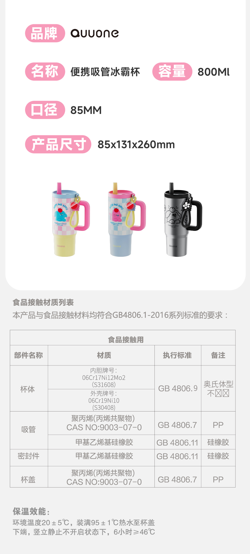 商品名称:Quuone/趣玩800毫升便携吸管冰霸杯QV-03
