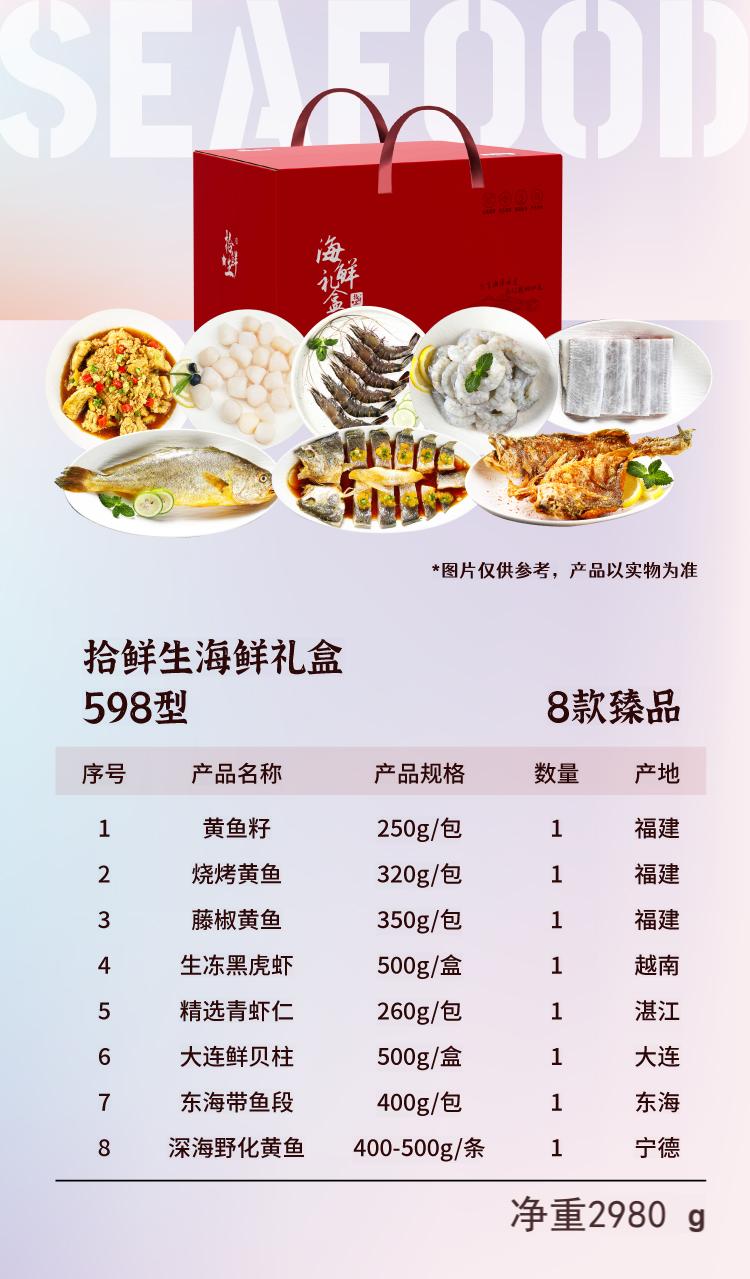 【顺丰配送】拾鲜生海鲜礼盒598型约2980g