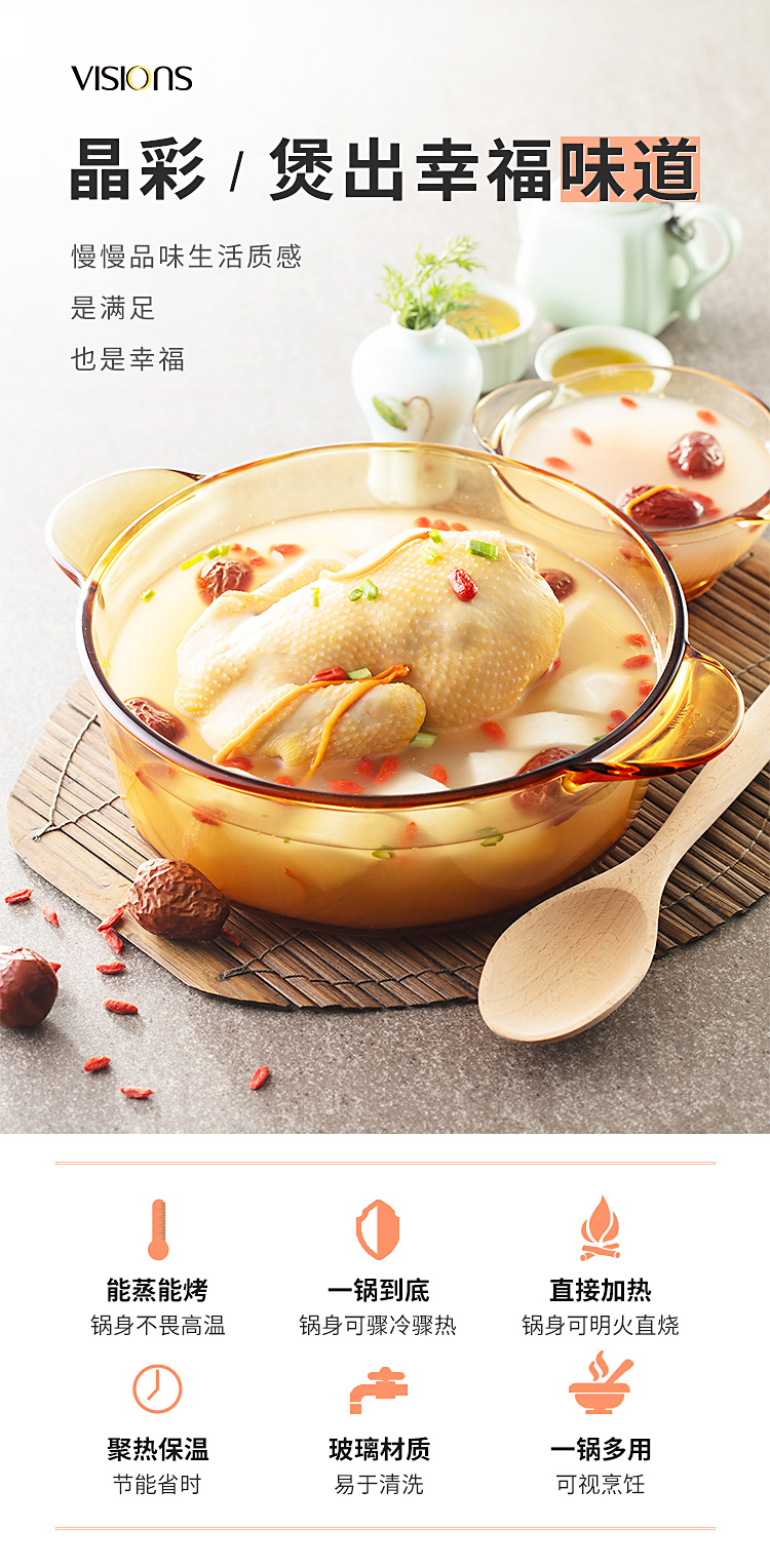 CorelleBrands/康宁餐具24cmVISIONS晶彩玻璃锅