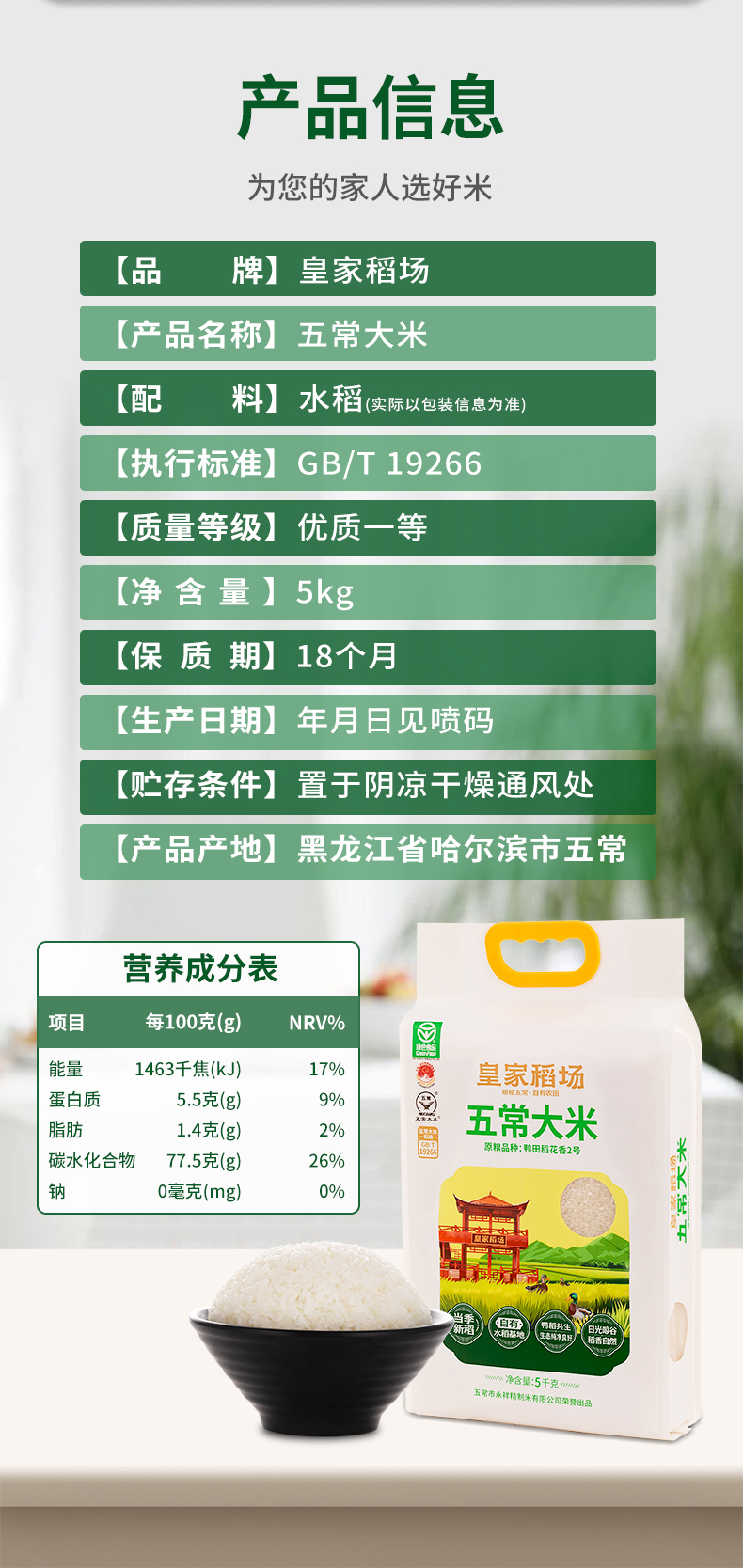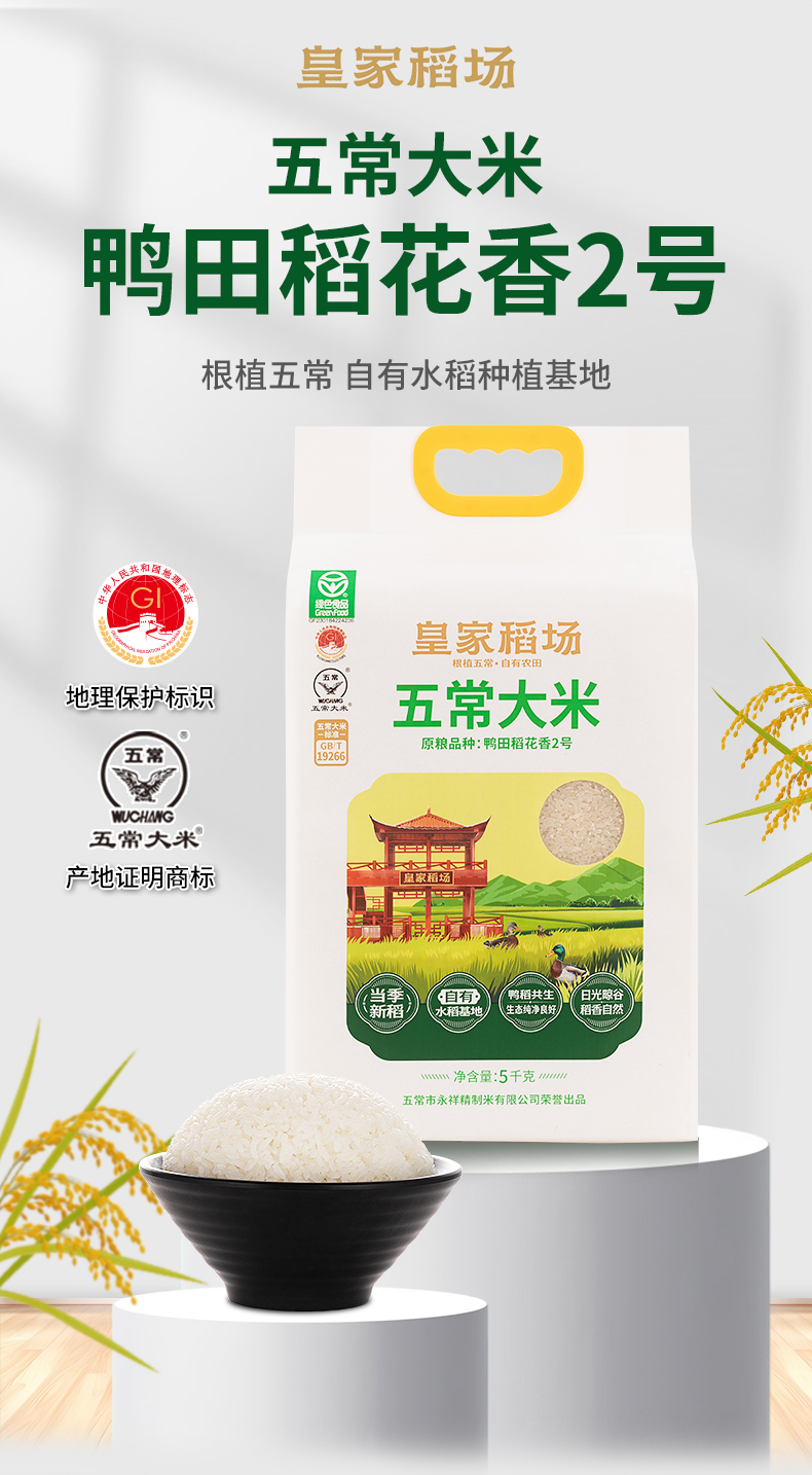 商品名称:皇家稻场鸭田稻花香2号五常大米5kg