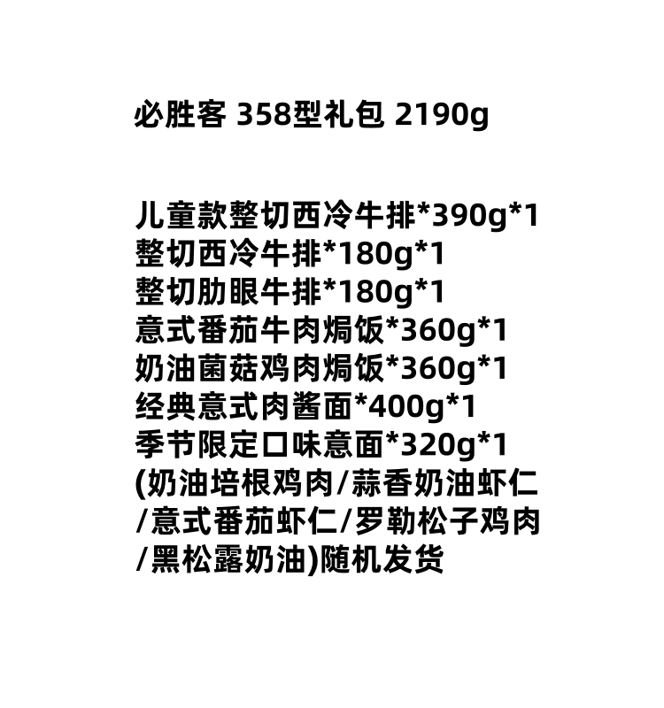 商品名称:【顺丰配送】必胜客358型速冻食品礼包2190g