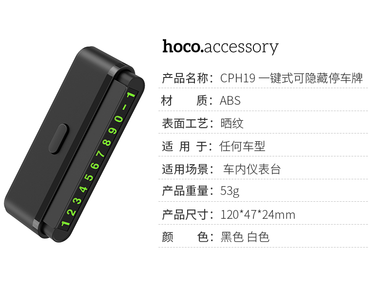商品名称:hoco./浩酷一键式可隐藏停车牌CPH19