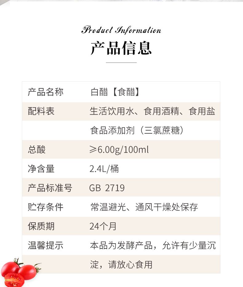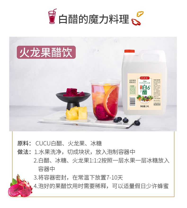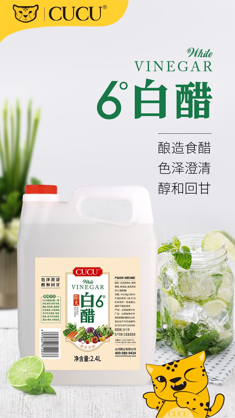 商品名称:CUCU 白醋2.4L 6度