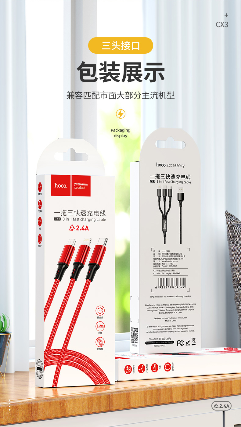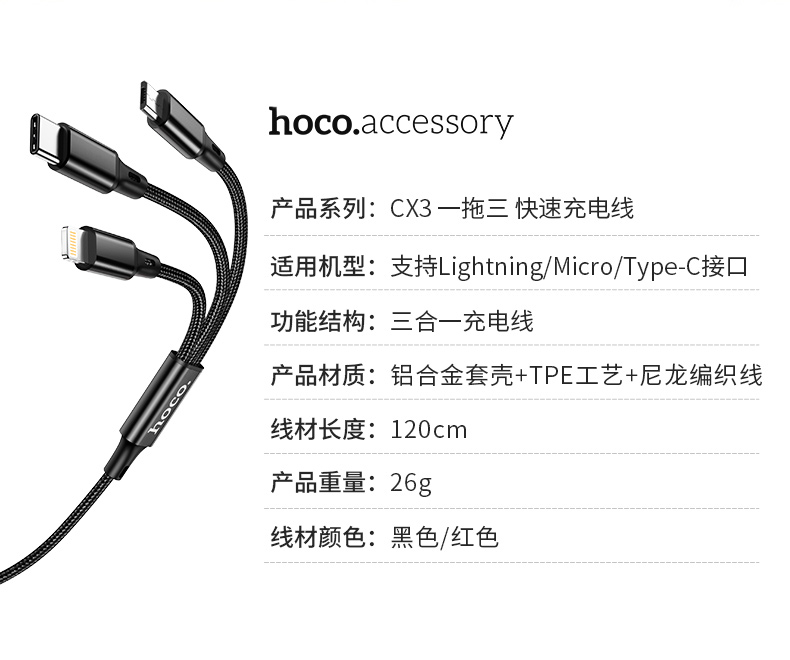 商品名称:hoco./浩酷 一拖三快速充电CX3