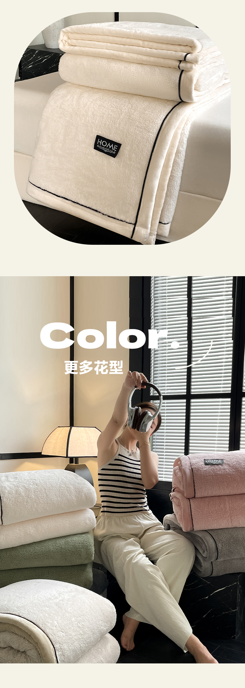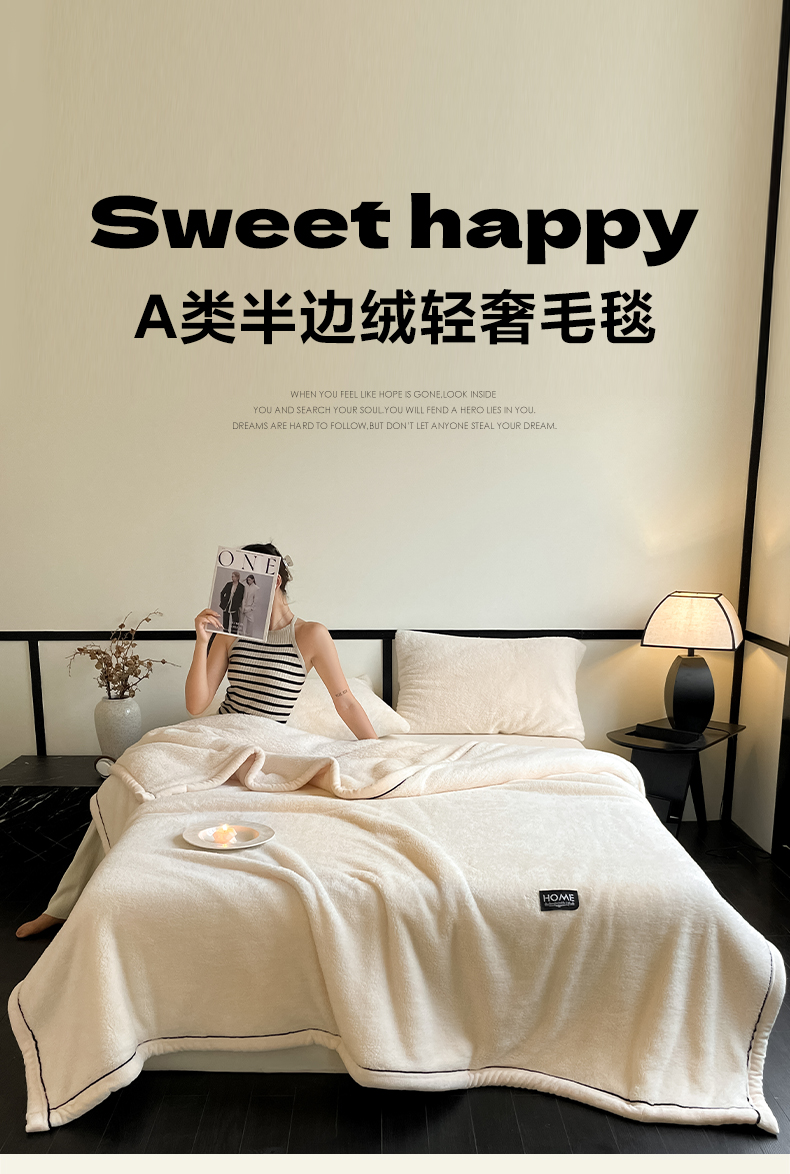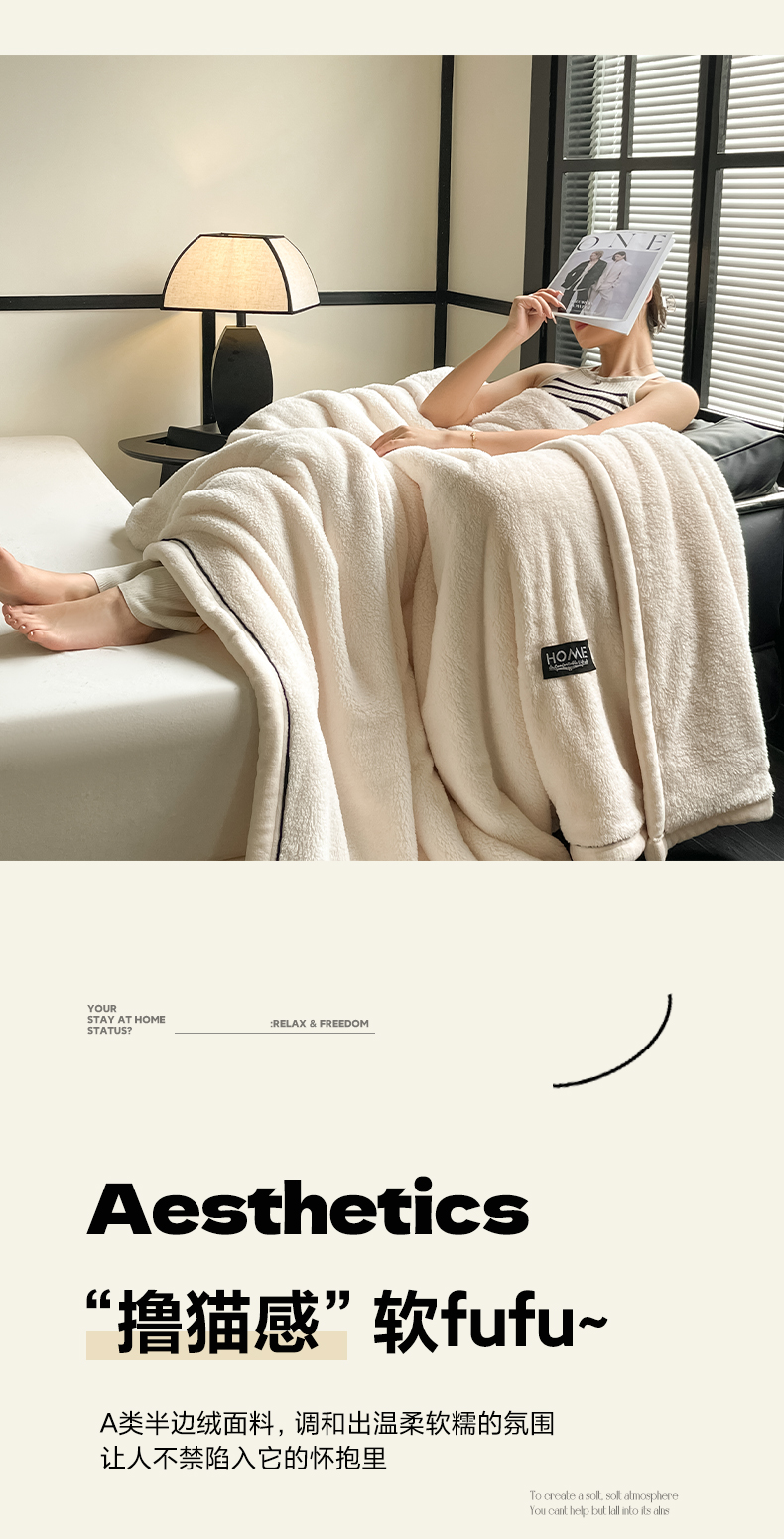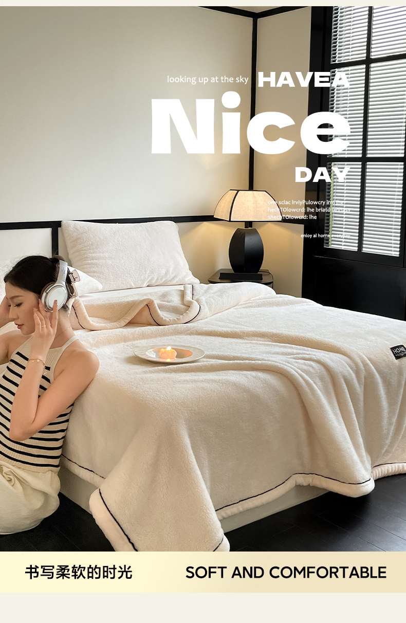 妃锦宝贝素白半边绒毛毯
