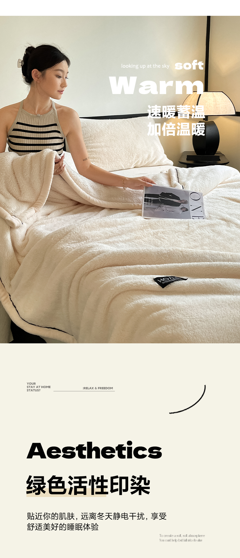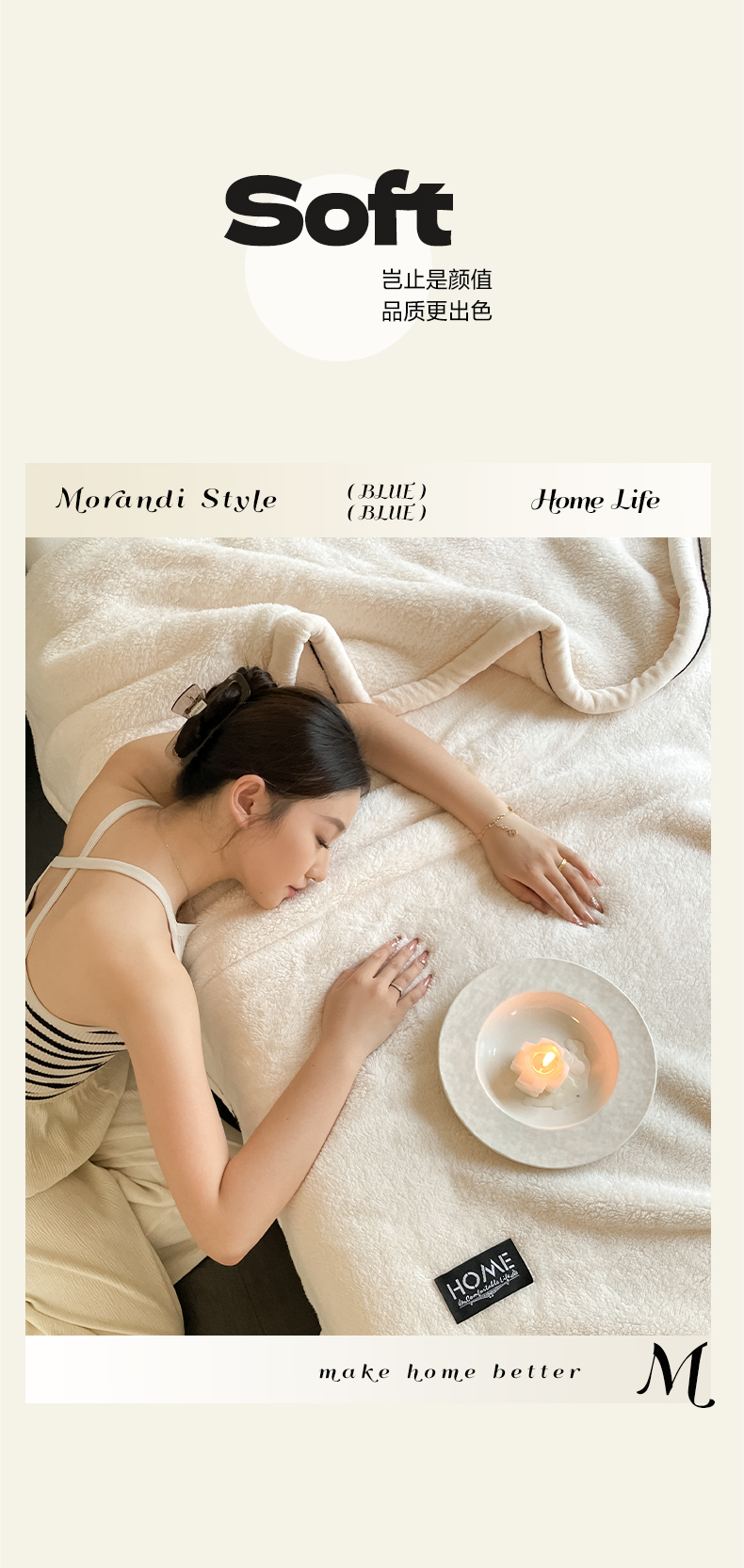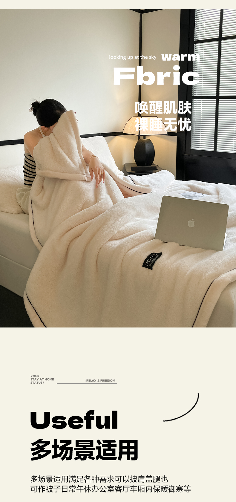 妃锦宝贝素白半边绒毛毯