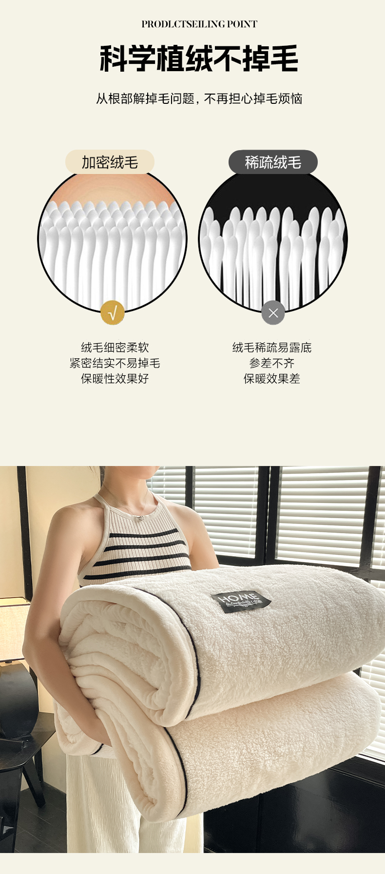 商品名称:妃锦宝贝素白半边绒毛毯