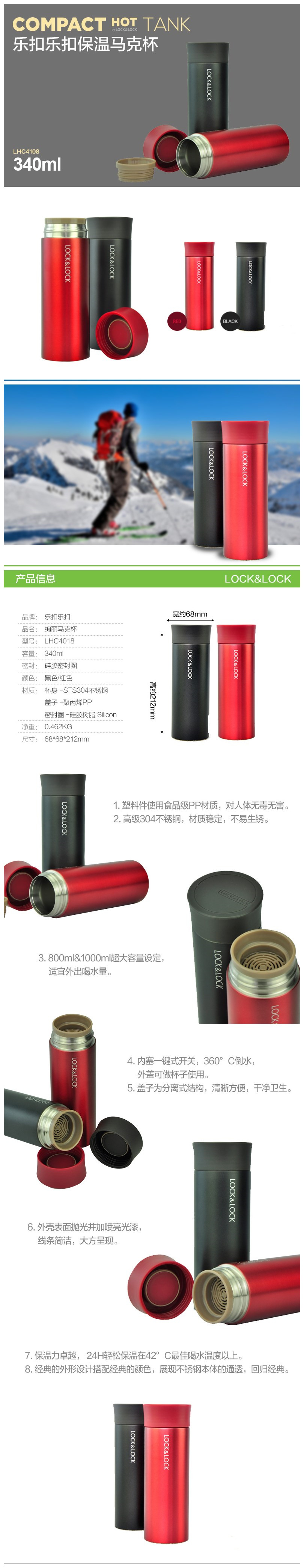 商品名称:LOCK&LOCK/乐扣乐扣340毫升绚丽马克杯LHC4018