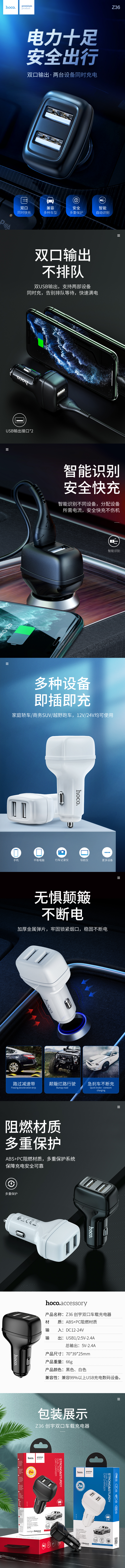 商品名称:hoco./浩酷创宇双口车载充电器Z36