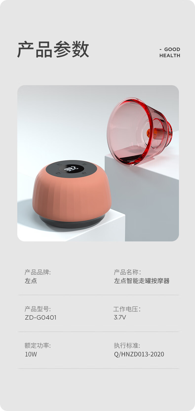 商品名称:左点智能⾛罐按摩器不含罐-红砭⽯ZD-G0401