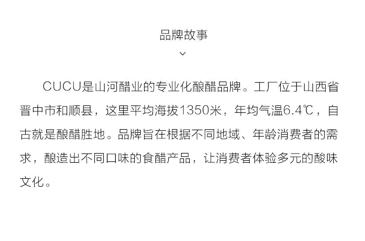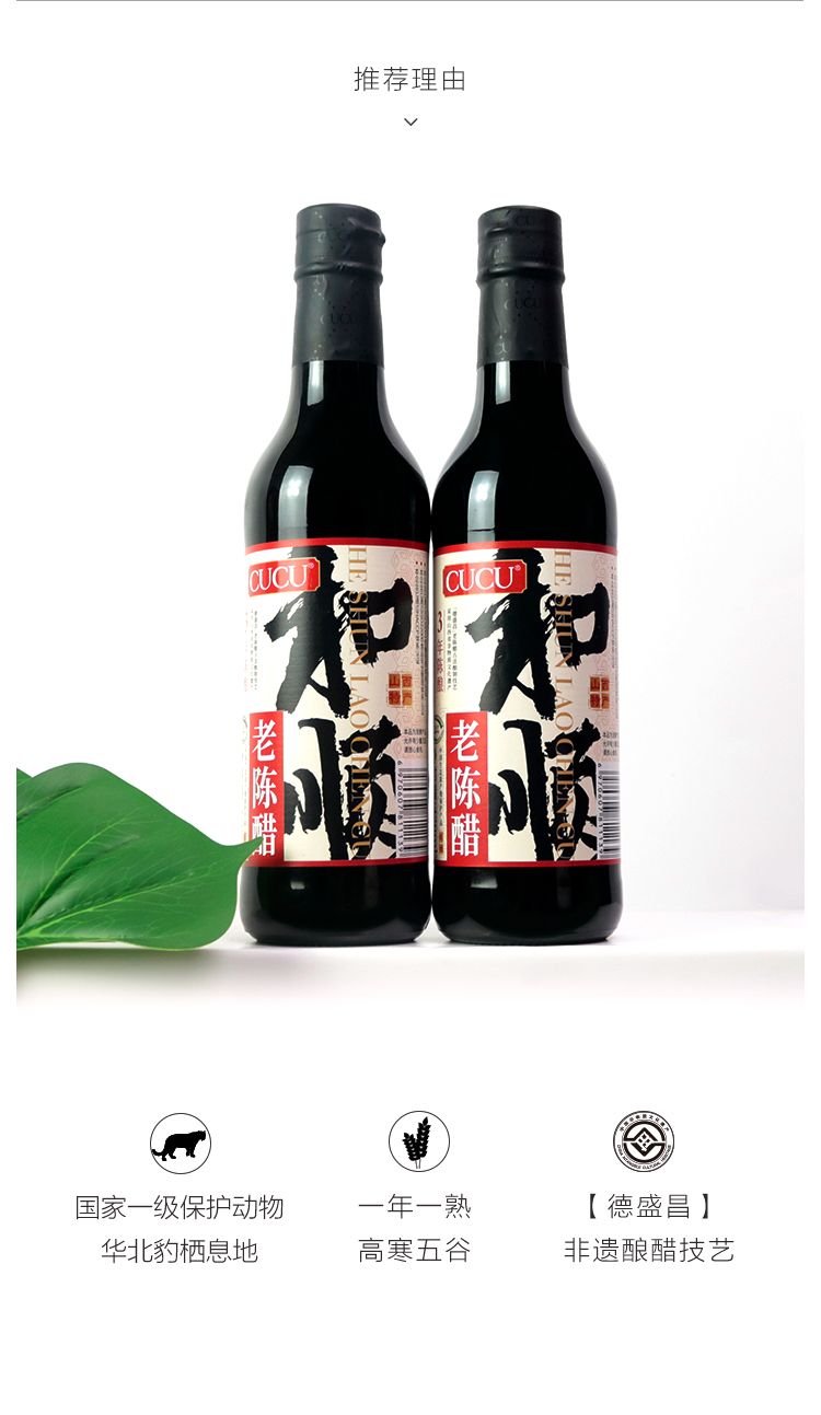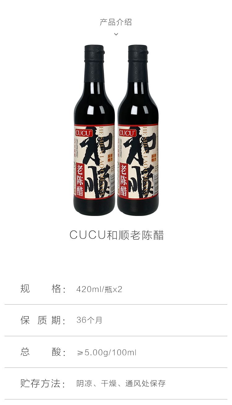商品名称:CUCU 3年陈酿老陈醋 山西特产陈醋粮食酿造5度酸420ml*2瓶