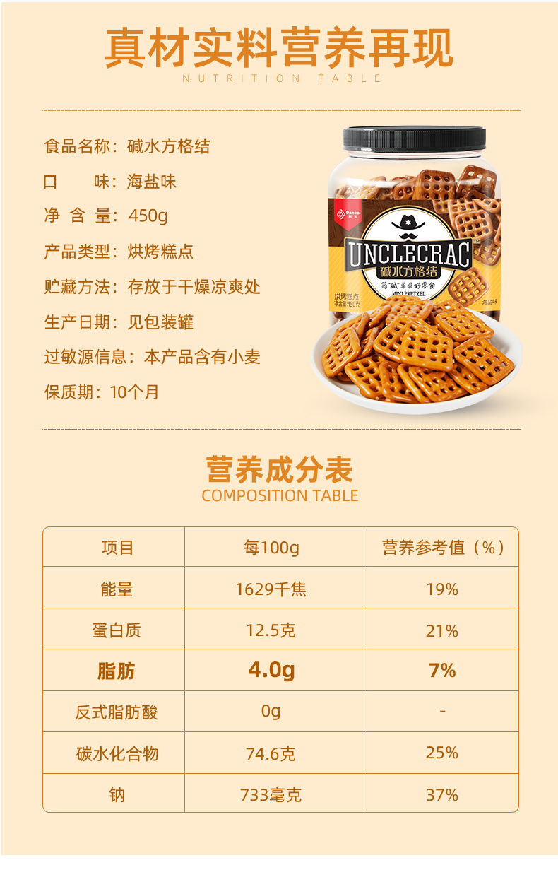 商品名称:Danco/丹夫伯力爵碱水方格结-海盐味450g