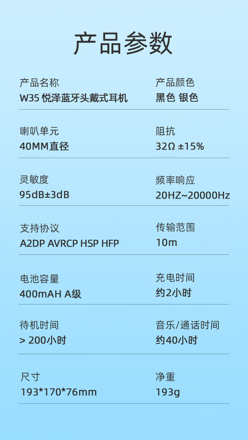商品名称:hoco./浩酷悦瑞蓝牙头戴式耳机W35 Max