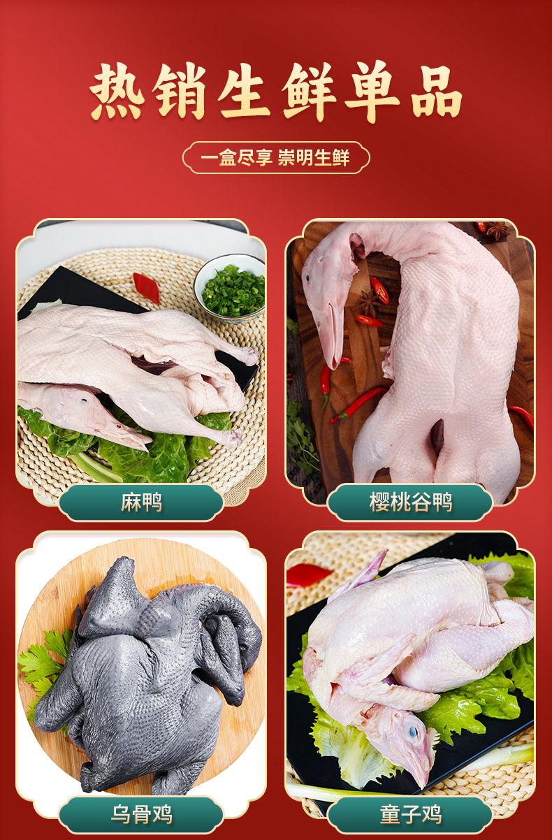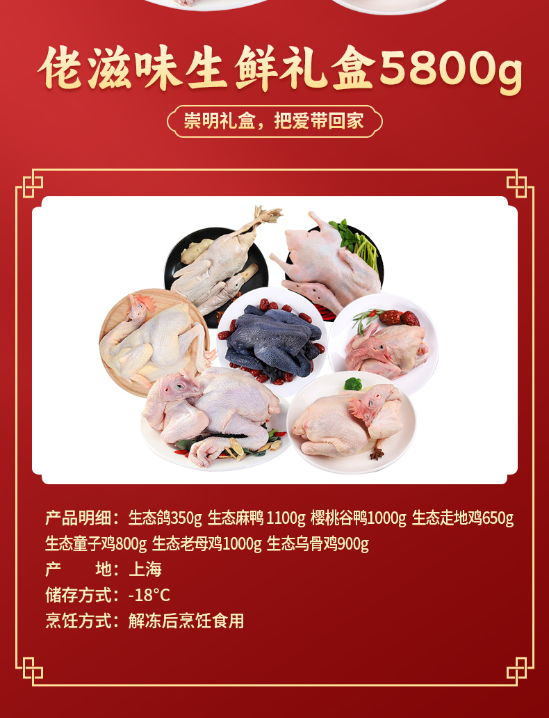商品名称:【顺丰配送】佬滋味崇明家禽生鲜礼包598型约5800g