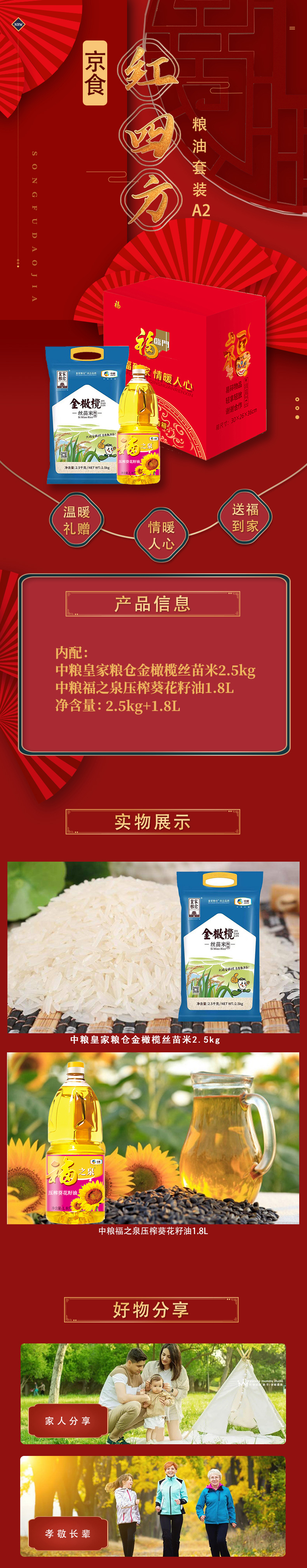 中粮京食红四方粮油套装A2款2.5kg+1.8L