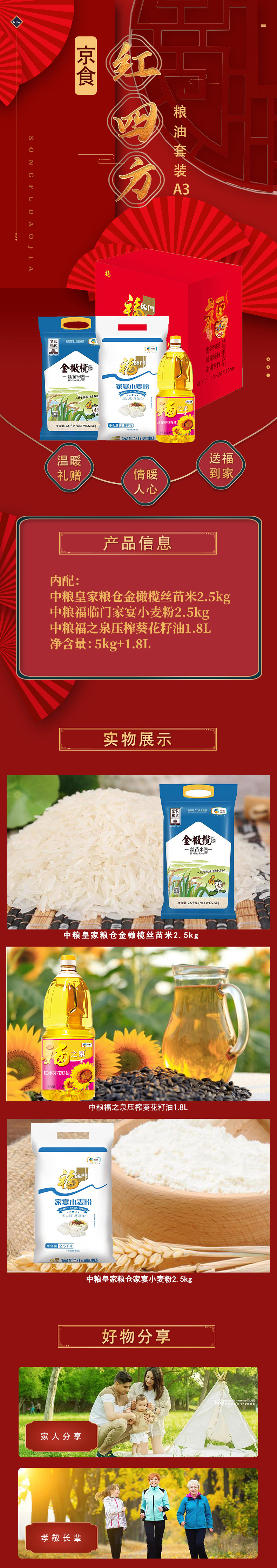 商品名称:中粮京食红四方粮油套装A3款5kg+1.8L