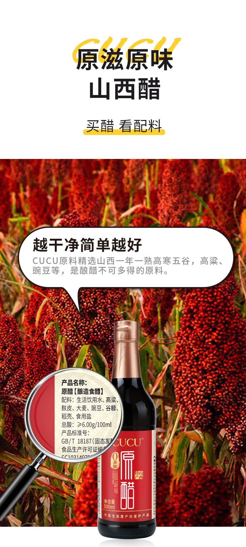 商品名称:CUCU-500ml*2瓶-6.0°-原醋