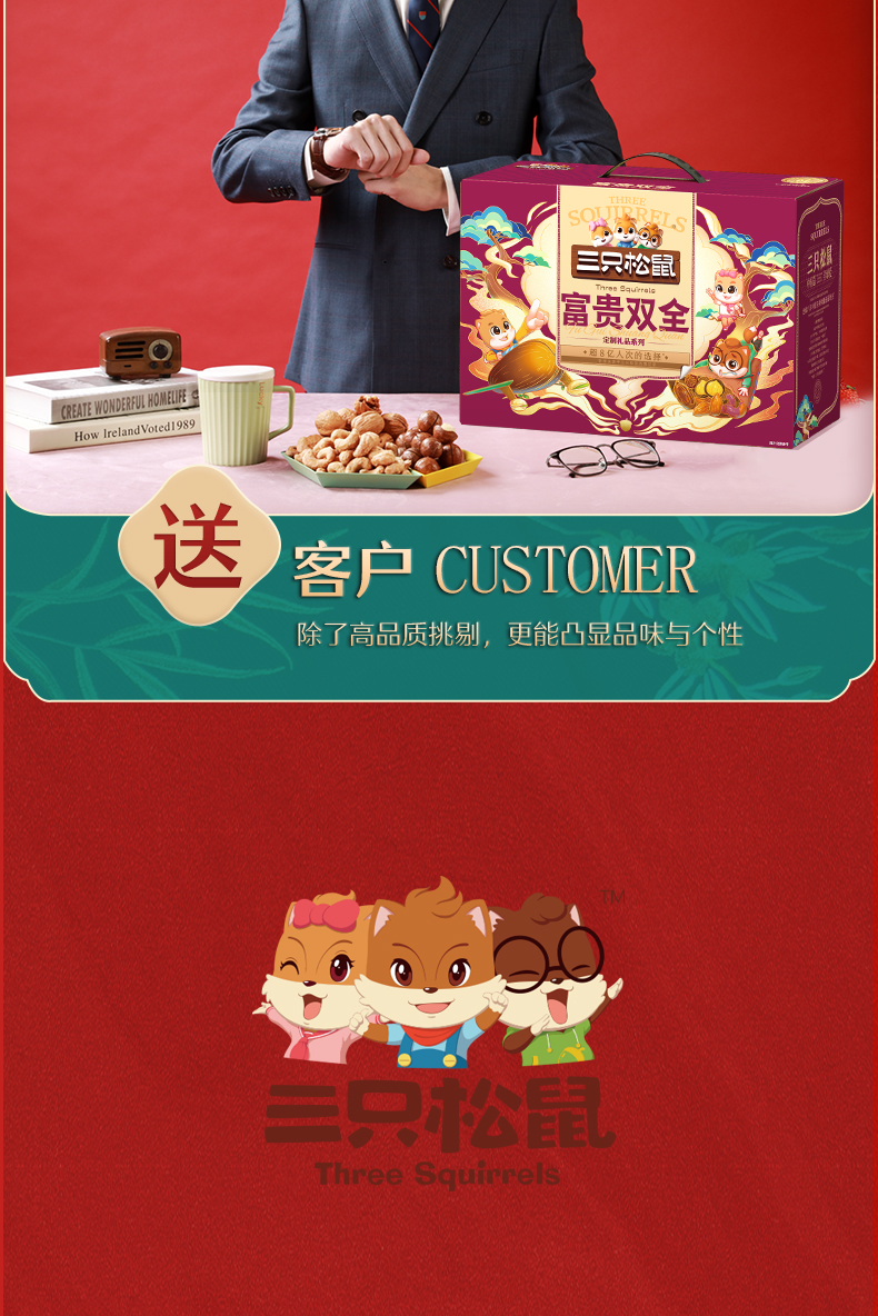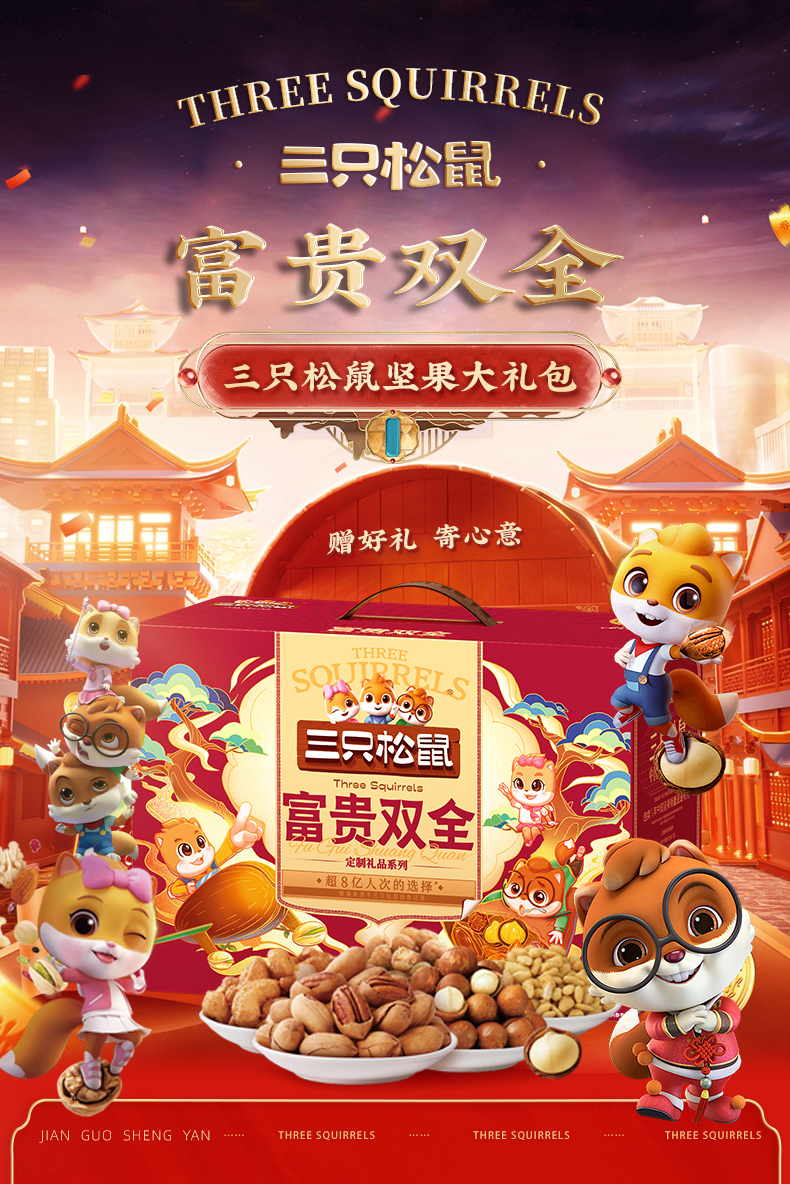 三只松鼠富贵双全坚果零食礼盒2134g+480ml