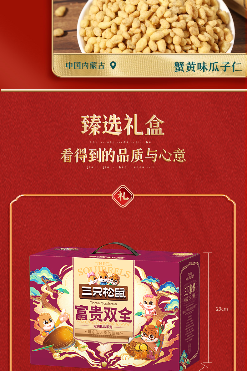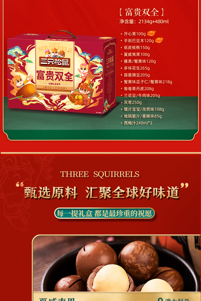 商品名称:三只松鼠富贵双全坚果零食礼盒2134g+480ml