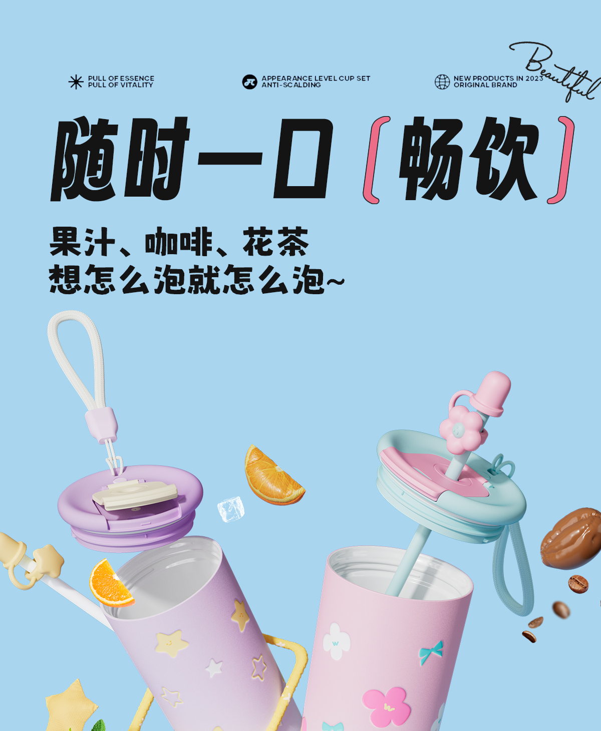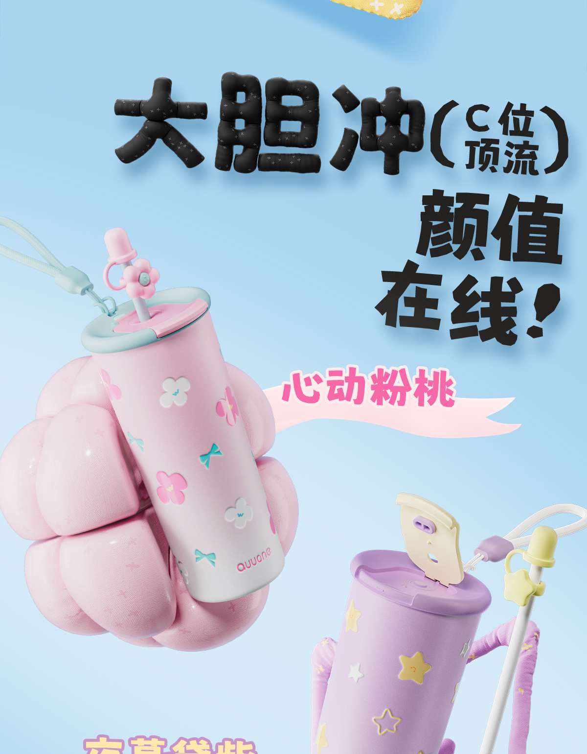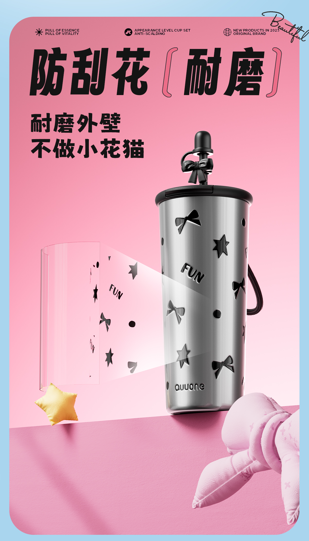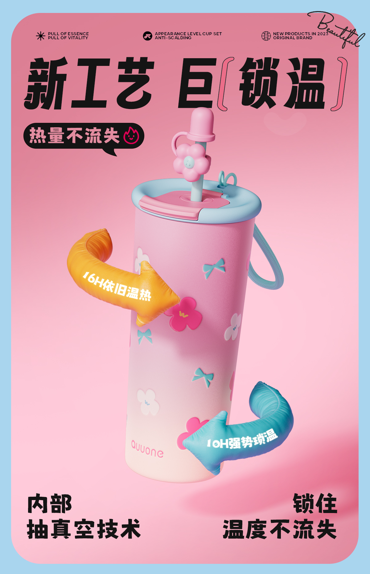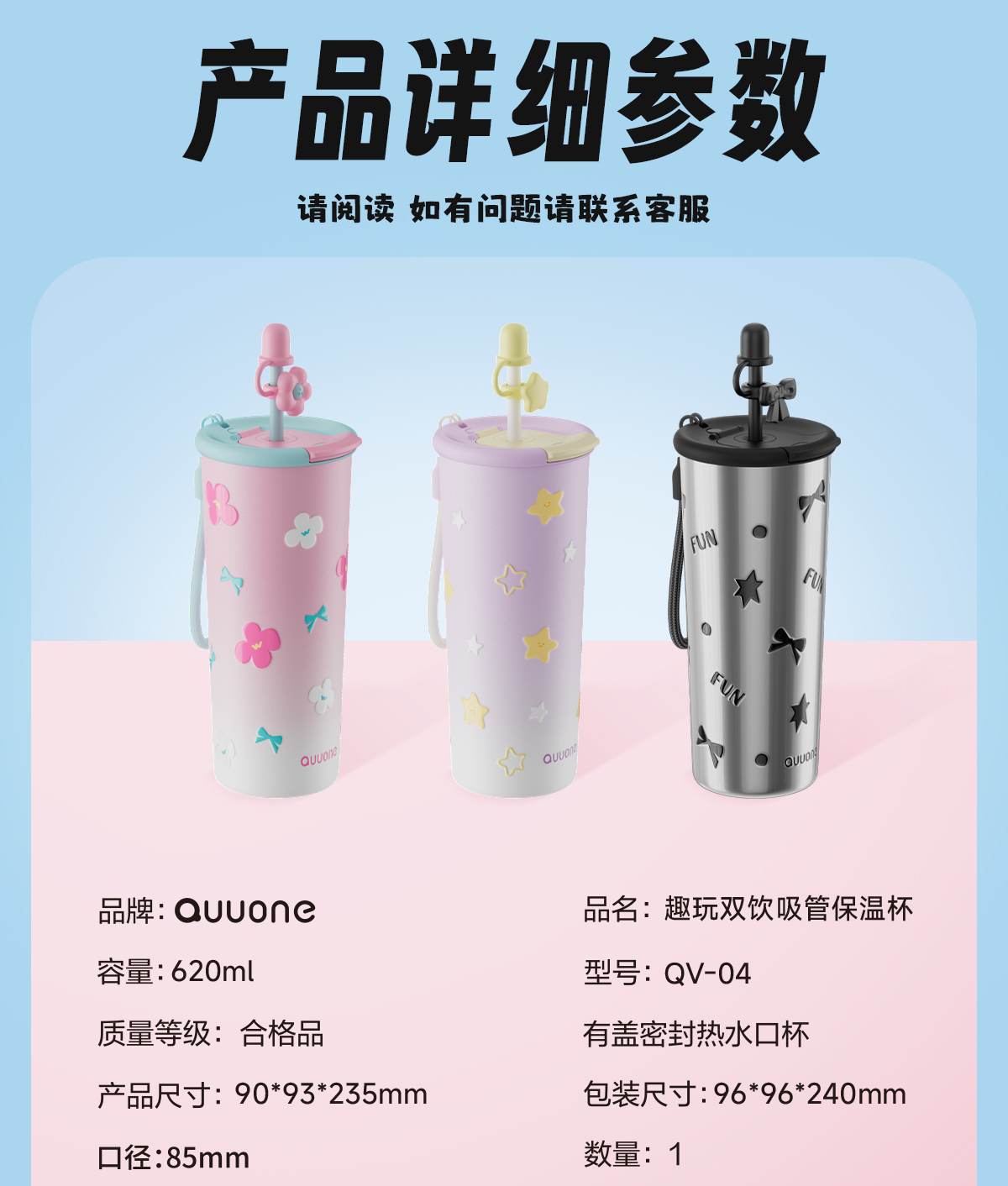 商品名称:Quuone/趣玩620毫升双饮吸管保温杯QV-04