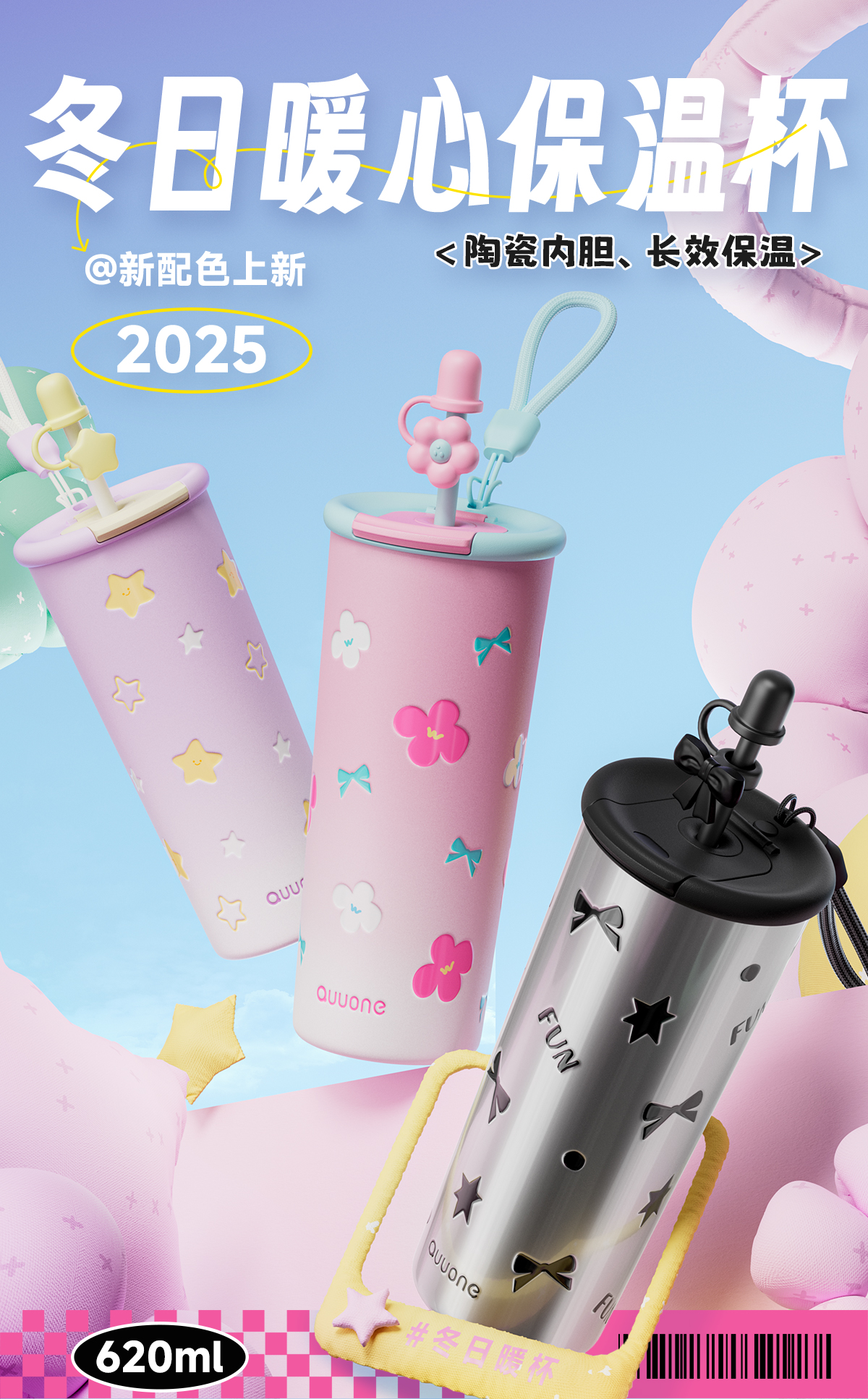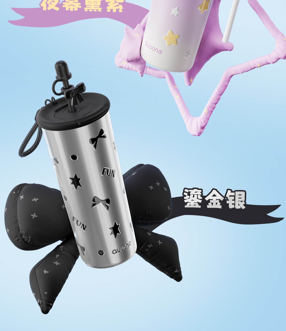 Quuone/趣玩620毫升双饮吸管保温杯QV-04