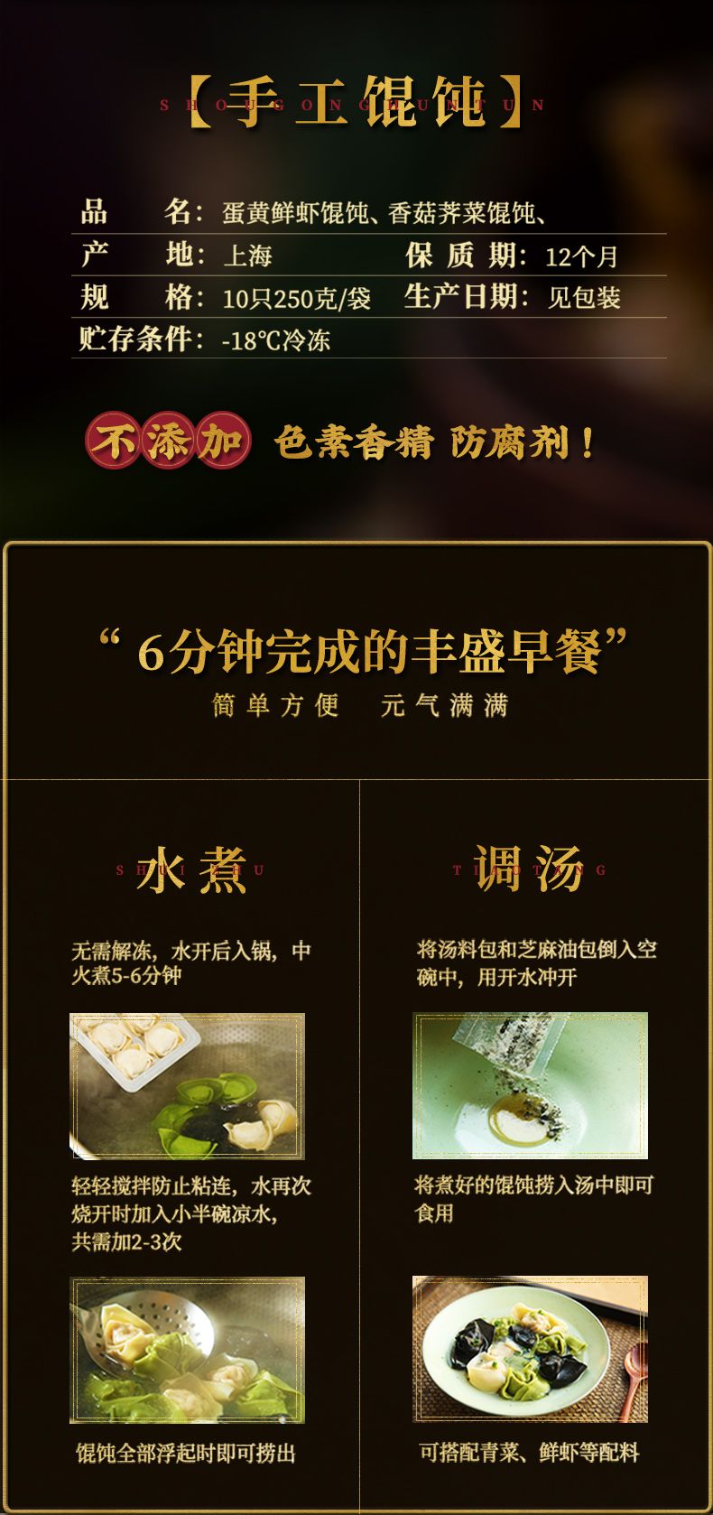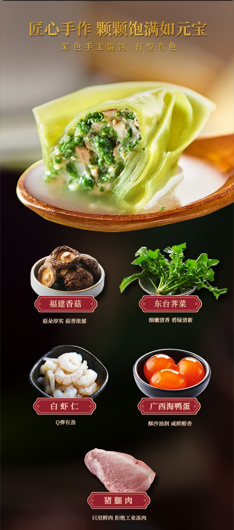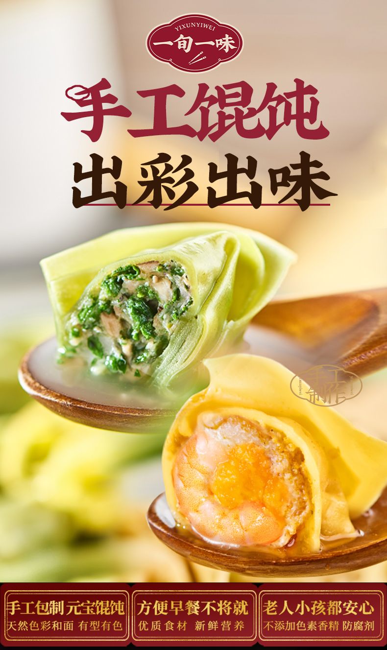 商品名称:一旬一味 | 馄饨组合套餐(香菇荠菜手工馄饨*3蛋黄鲜虾手工馄饨*3)