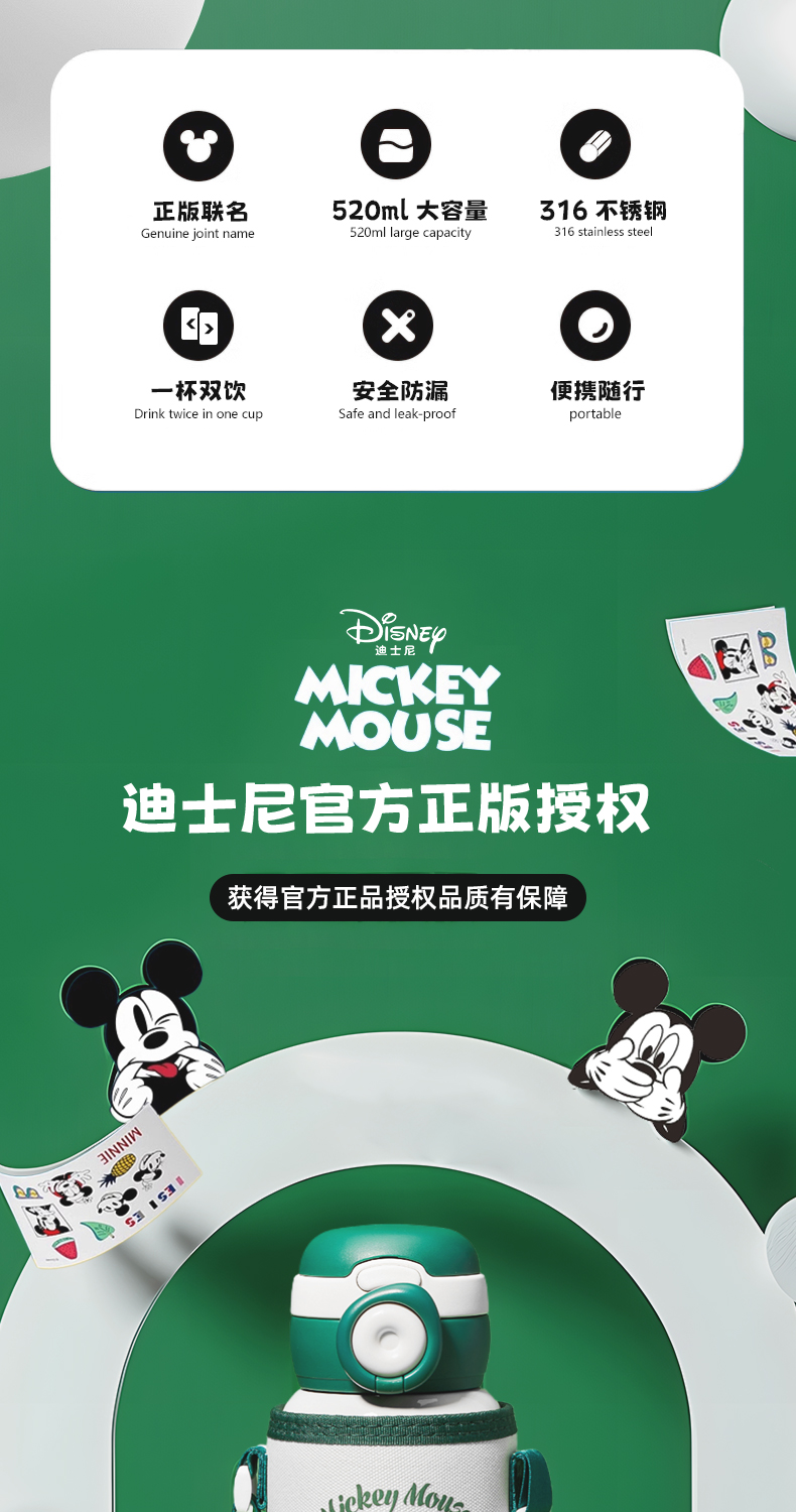 DISNEY/迪士尼520毫升双饮保温杯ZH16208
