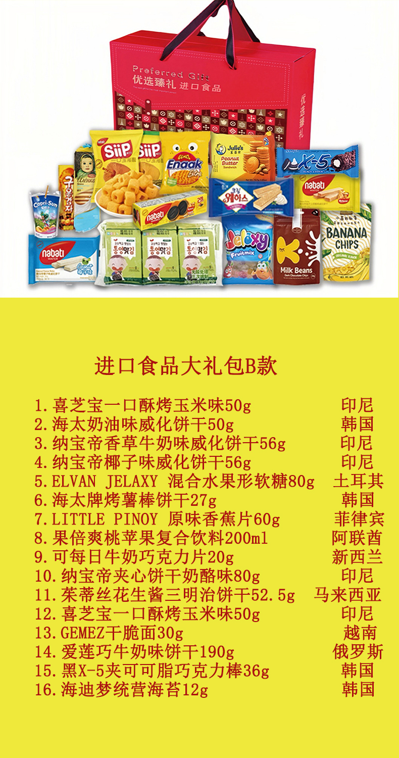 商品名称:优选臻礼进口零食礼盒B款849.5+200ml