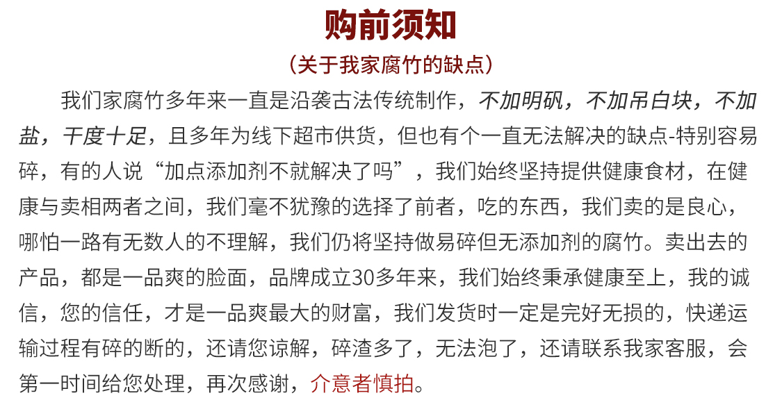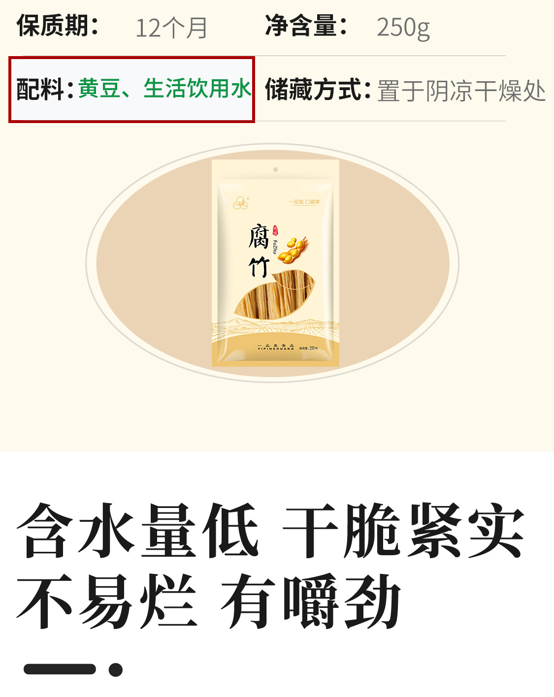 商品名称:一品爽传统腐竹250g*2袋