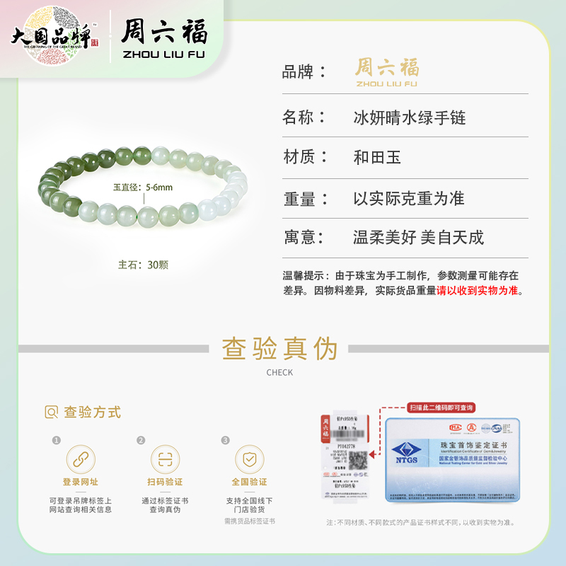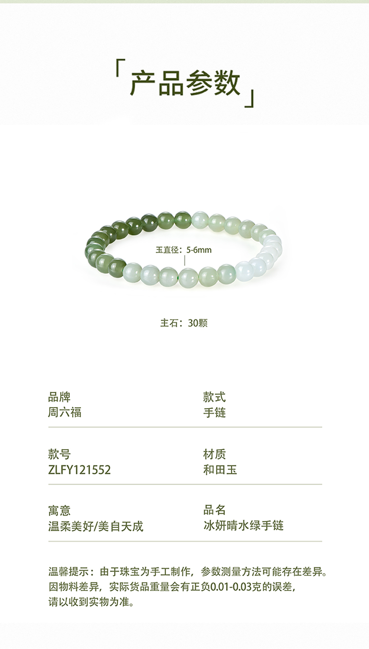 商品名称:周六福和田玉冰妍晴水绿手链ZLFY121552