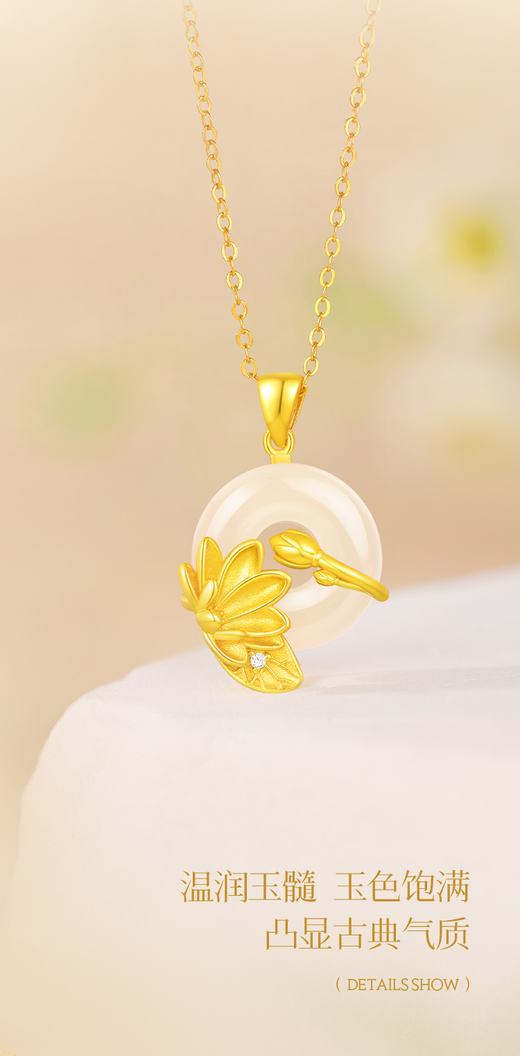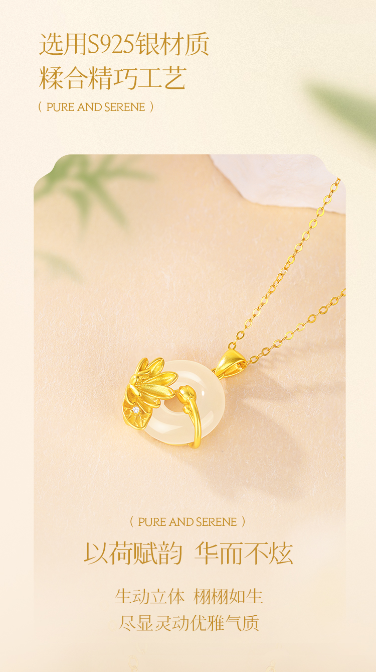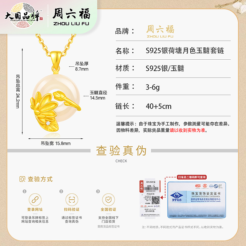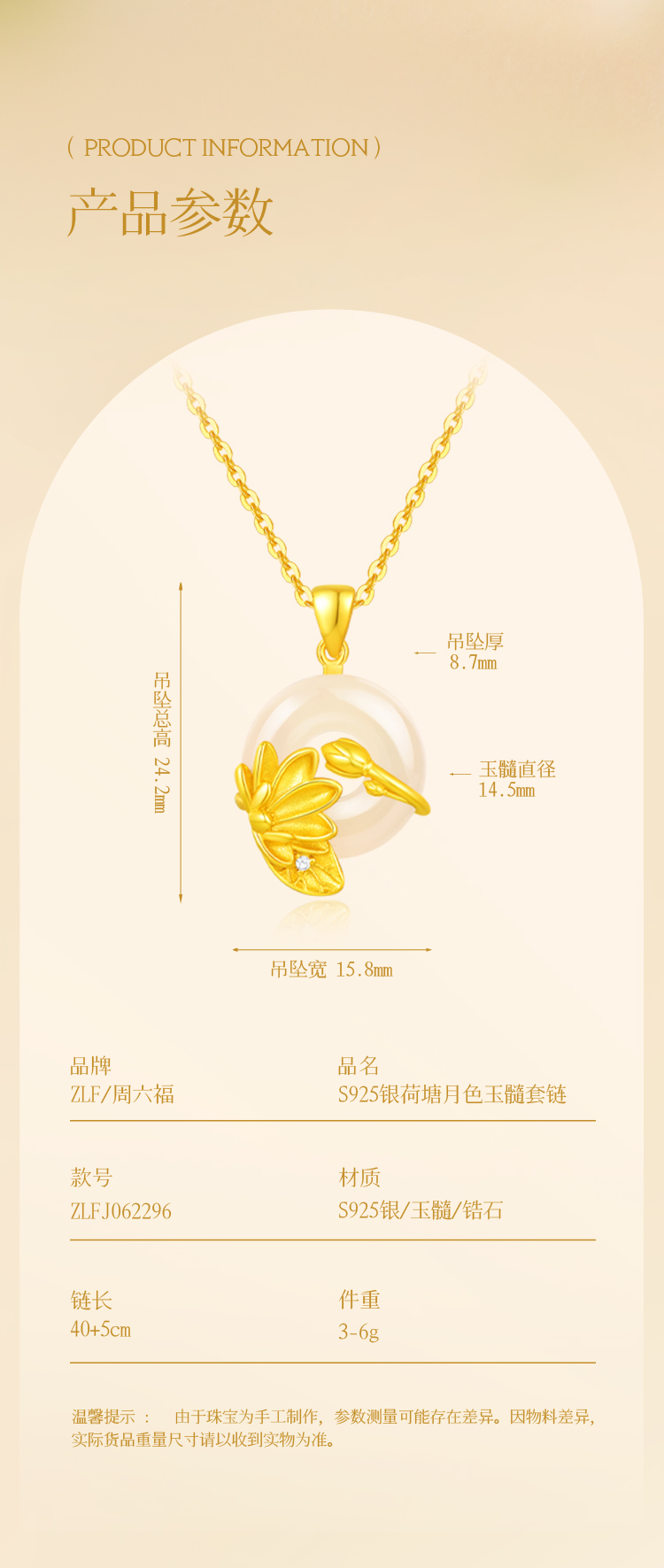 周六福S925银荷塘月色平安扣玉髓套链ZLFJ062296