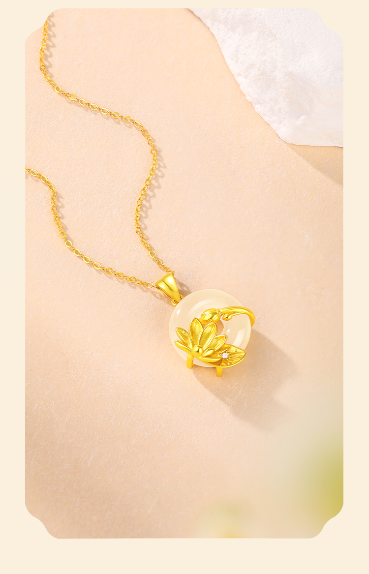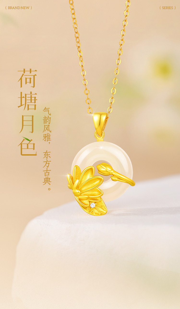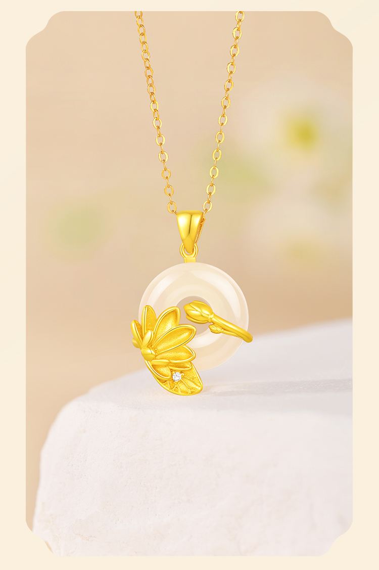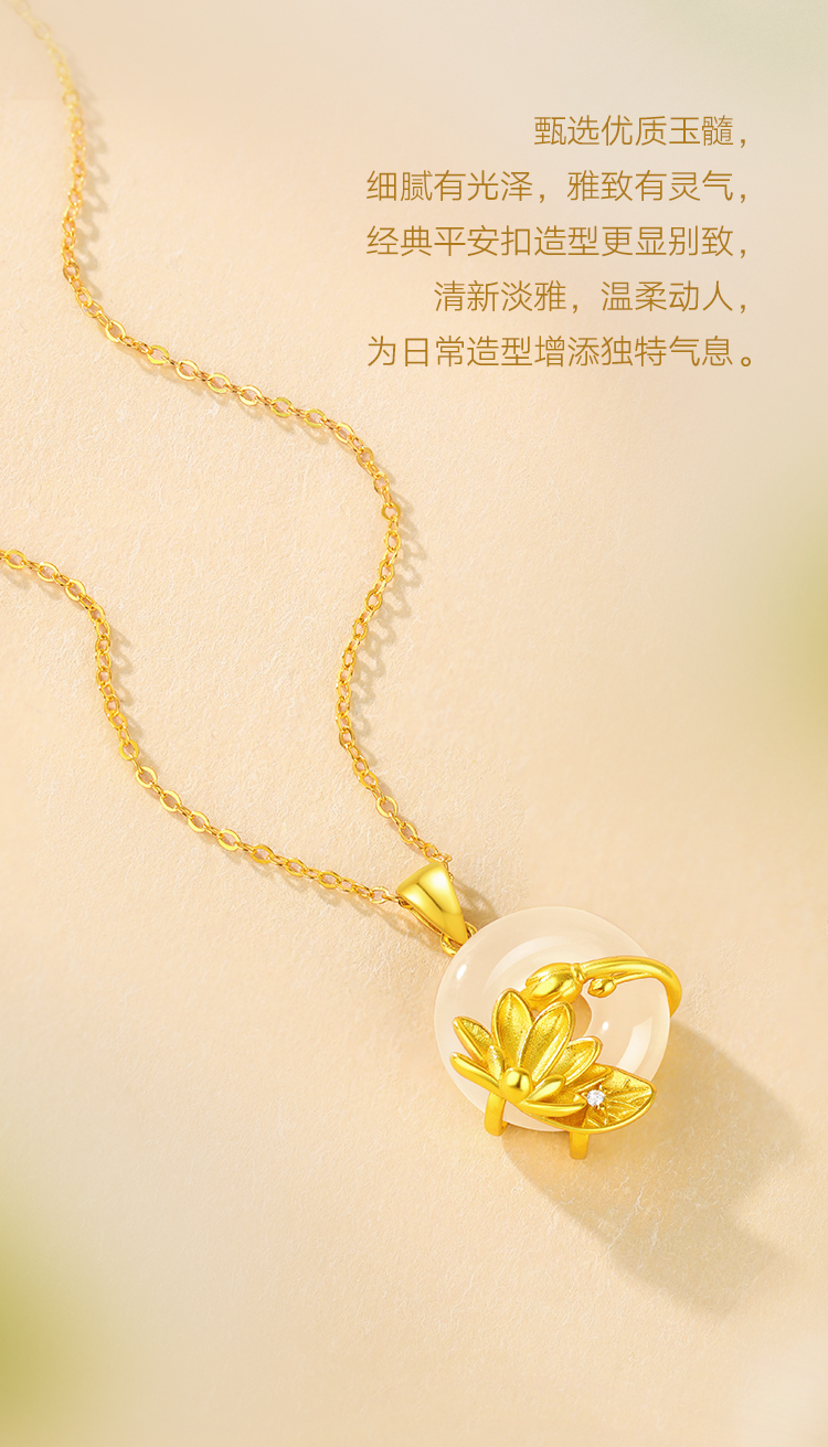 周六福S925银荷塘月色平安扣玉髓套链ZLFJ062296